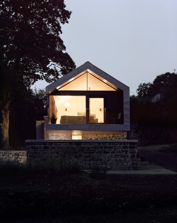 The house, which stands on the existing stone barn, was designed by McGarry-Moon Architects. It focuses on panoramic views and natural light.