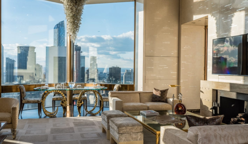 A stunning big one Penthouse Mark is the largest hotel suite in the United States, it covers as much as 10,000 square meters, including a 2,500 square meter roof terrace. The lavishly decorated penthouse designed by the legendary French interior designer Jacques Grange resembles a magnificent residence, representing the pinnacle of modern luxury with exceptional comfort and detail. Located on the top two floors of the hotel, it includes 5 bedrooms, 4 fireplaces, 6 bathrooms, 2 powder rooms, a living room boasting 26-foot ceilings and its own bar. Each piece of furniture is custom made. Penthouse Mark also has its own conservatory, library lounge and magnificent dining room. Price per night $75,000.