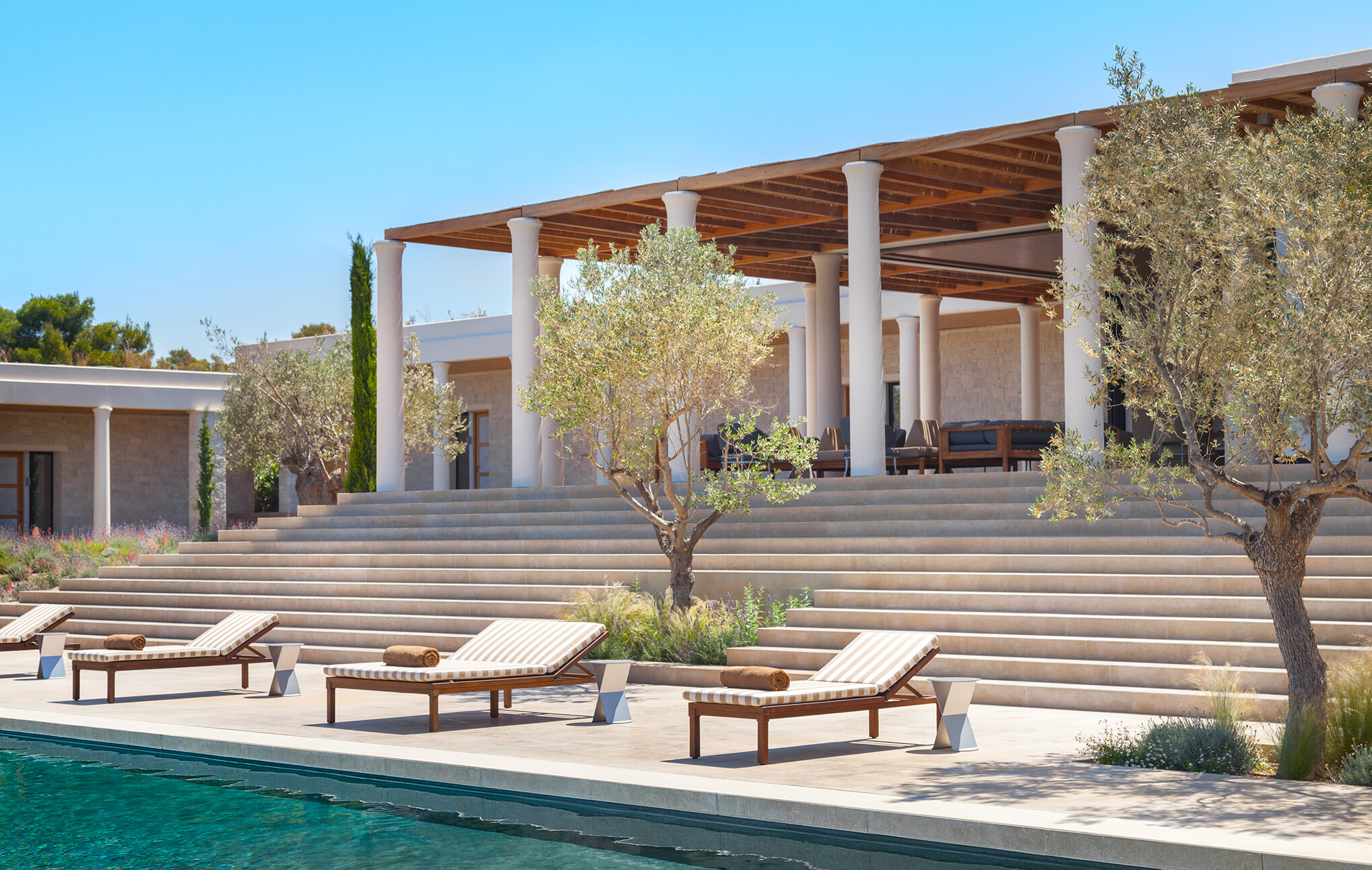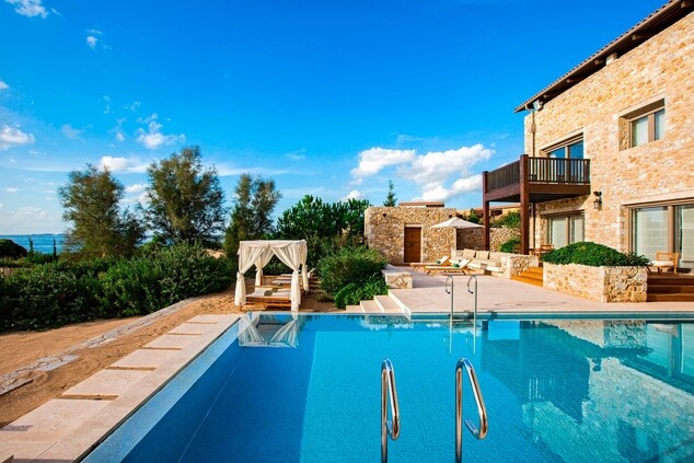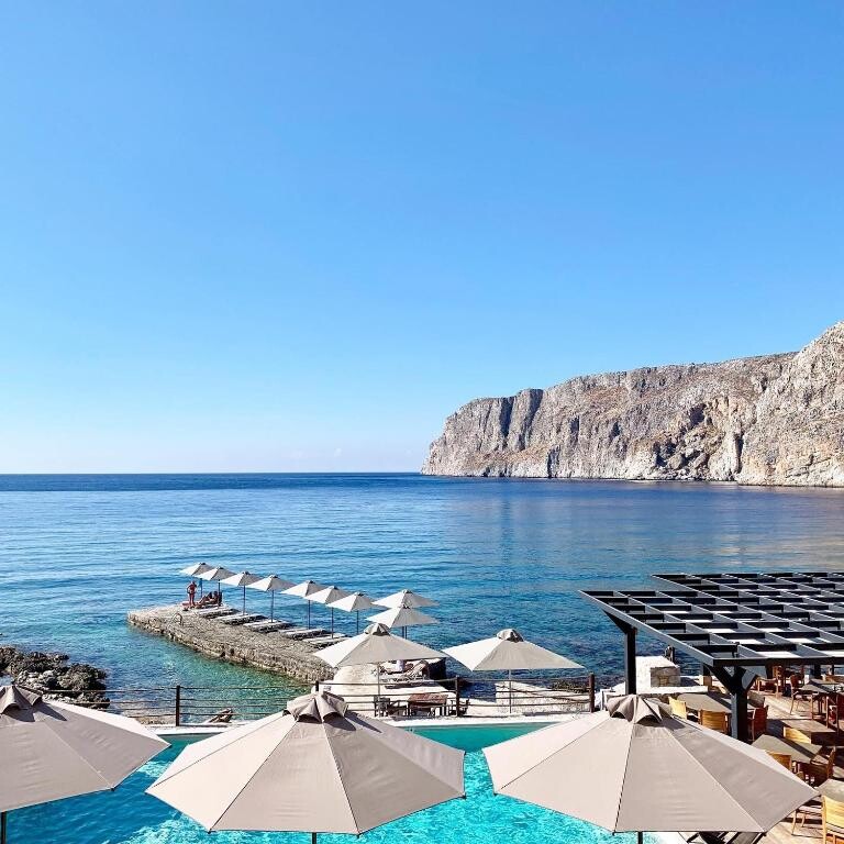 Amanzo, located on top of a hill with a panoramic view of the Aegean Sea, is a true temple of luxury. This resort offers spacious villas with private pools, where guests can relax and enjoy the view. There is a picturesque town nearby Porto Heli, known for its beautiful beaches and excellent restaurants.