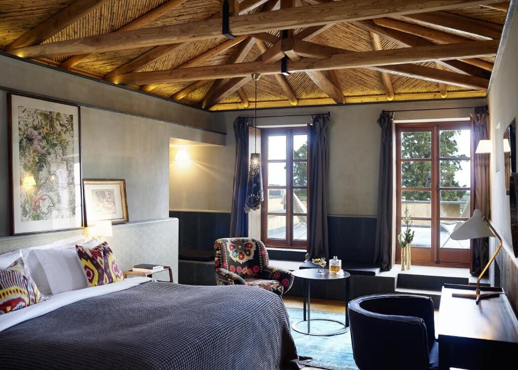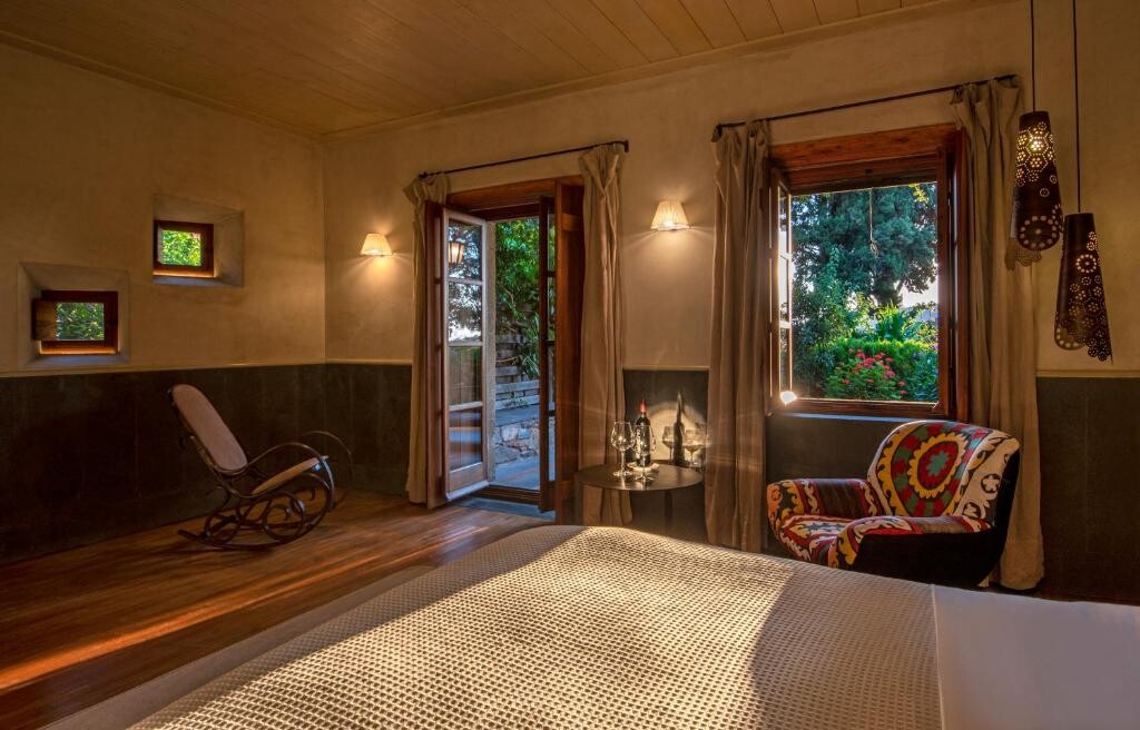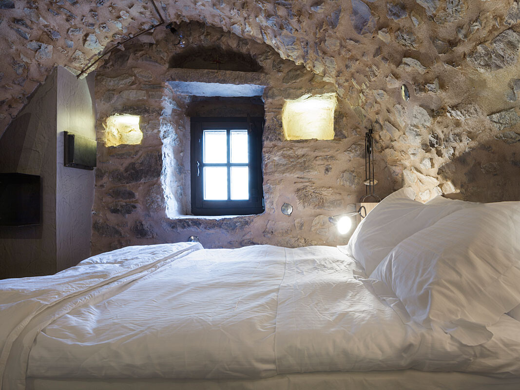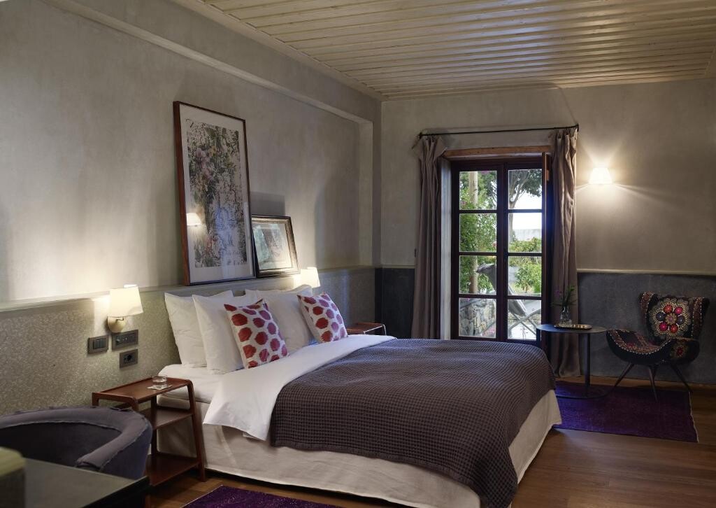 In the embrace of the Greek peninsula Peloponnese, where history intertwines with mythology, a real gem is hidden - Kinsterna Hotel. Once a Byzantine house, this boutique hotel is like a time machine that takes you back in time while pampering you with all modern conveniences. Each room is uniquely designed with a love of detail, reflected in the handcrafted, form-fitting beds to the Greek herb-scented bath amenities.