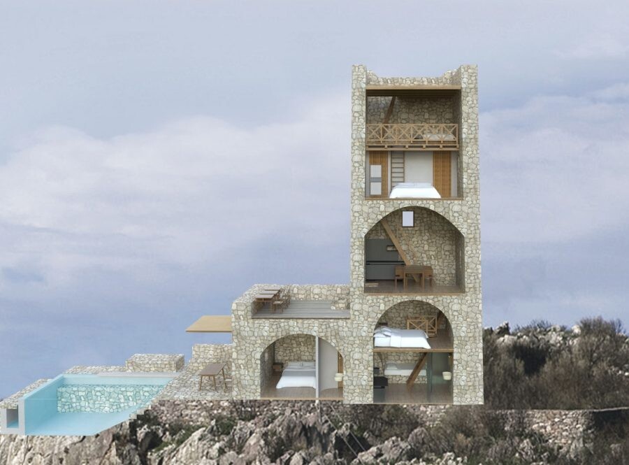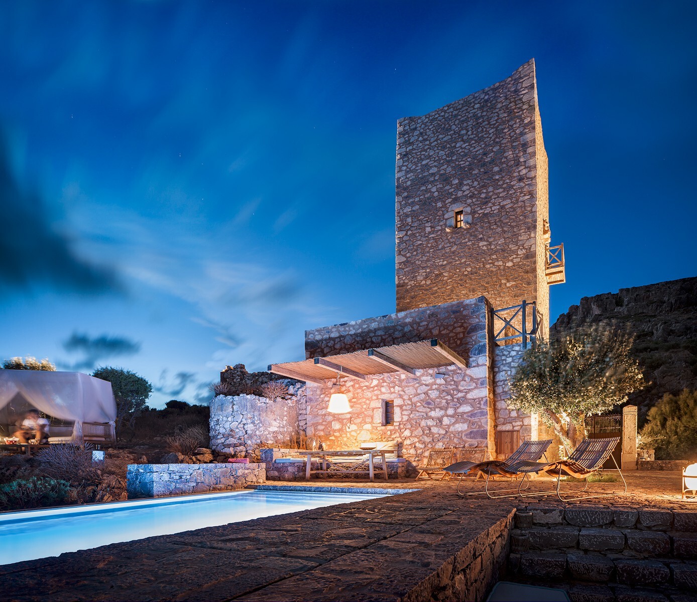 Tainaron Blue Retreat is located on top of a hill in the village of Vathia, famous for its historic towers. This small but luxurious hotel offers spectacular sea views, private terraces and infinity pools. A case of a fairy haven, which is hidden in a stone tower from the 19th century. From the top of the tower there is a breathtaking view of the southern slope of Mount Taygetos and the endless blue of the sea. In the embrace of this idyllic location, you can admire the magical dance of the sunset or wake up at dawn as the day is born in its gentle beauty.