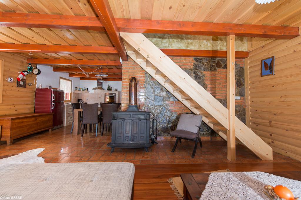 The log cabin includes a living area with a sofa, a fireplace, a flat-screen TV, a fully equipped kitchen with a dining area, and a private bathroom with a shower and a hairdryer. There are two bedrooms, which provide a comfortable stay for a larger family or two couples. The accommodation also includes a garden, a balcony and a terrace. Guests can use the barbecue facilities on site and rent a bicycle for free. The pearl of this accommodation is also its own sauna, where visitors can gather strength and relax their bodies after long days of activity.