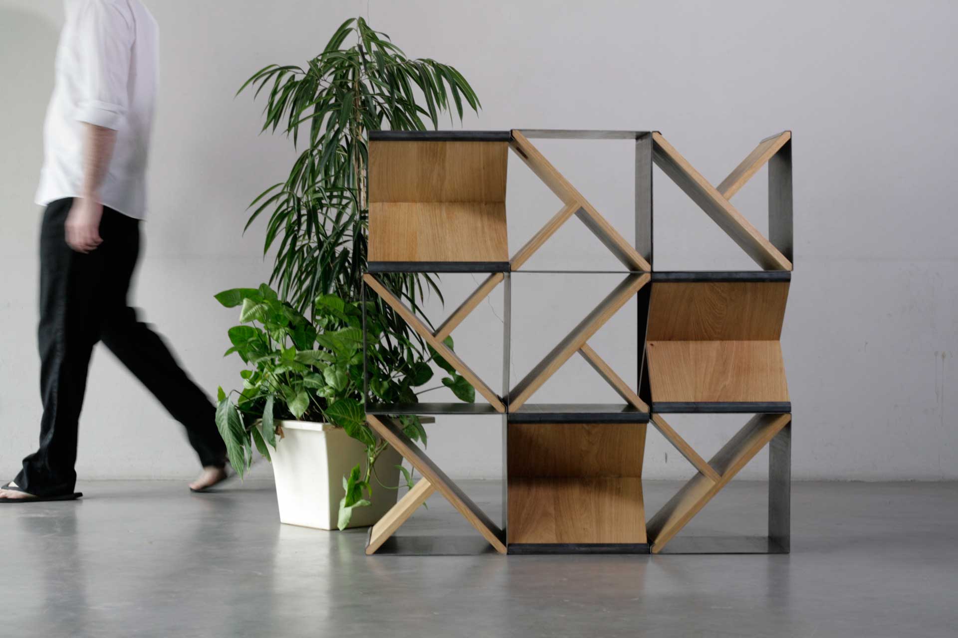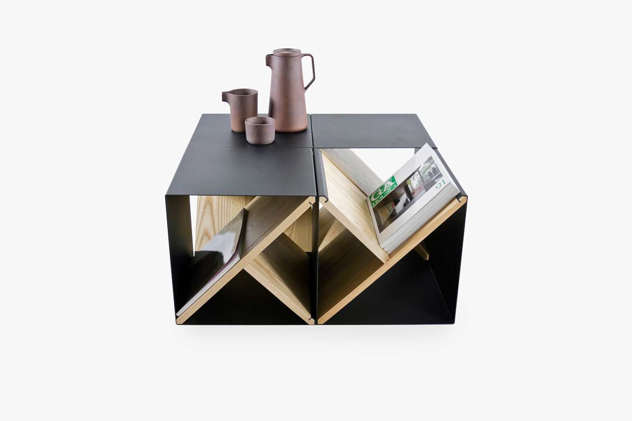 No screws or glue the made chair also intended its function coffee tables, which we assemble with a new element added. Diagonal panels, by adding new elements, form a place to store newspapers, magazines or even children's toys. Several elements together make it useful bookshelf, which gives the design a geometric shape. If you wish, you can "tilt" the chair to any side and thus create your own shape and design.