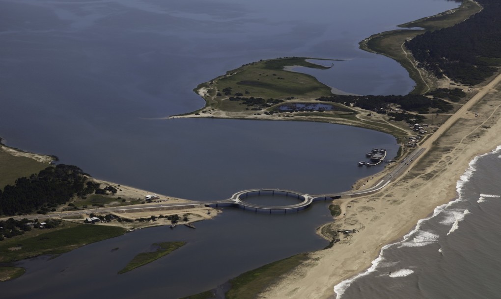 Laguna Garzón is circular bridge for cars and pedestrians on the southern coast of Uruguay, which with its unusual design encouraging drivers to slow down and take time to observe the picturesque surroundings. The rotunda-shaped bridge, which quickly became a tourist attraction, will also be used as a corner observatory, but it is also reserved for fishermen. According to the architect's plans Rafael Viñoly they started building it in 2014 and opened 12 months later.