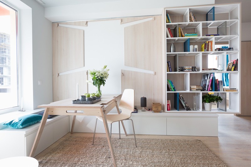 Everyone who has small apartments is looking for ways to make the most of the space. If it seems that no compromises can be made with certain furniture, interior designers always surprise us. A lift-up table that folds into the wall is a good example of this. When you need it, it is a classic dining table, but when you don't, it conveniently and almost imperceptibly hides in the wall. Brilliant.