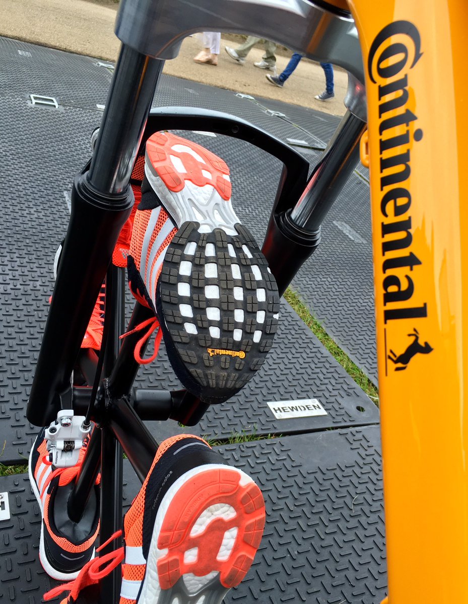 At London's RideLondon cycling festival, visitors encountered an unusual scene. A bike that uses sneakers instead of tires! The bike is signed by the German tire manufacturer Continental, who offered it to visitors for testing.