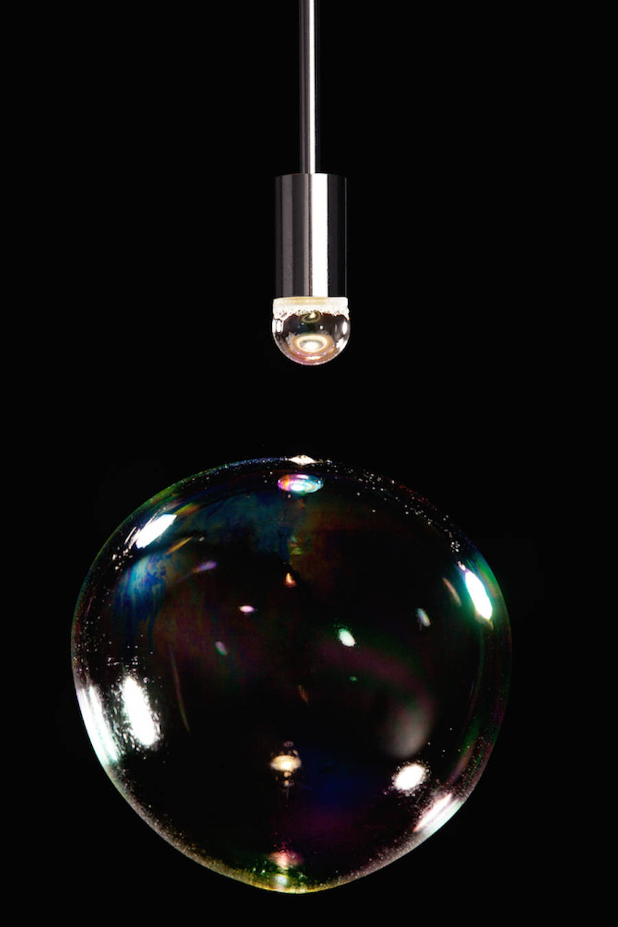 Soap bubbles are most often used as a children's toy, but with the help of a Swedish studio Front they also came to life as part of the interior design. Namely, they created an LED lamp The Surface Tension, which instead of a light bulb (or pumpkins, however you prefer) uses soap bubbles. Although the shelf life of bubbles is short, one is followed by another. Even without bubbles, the lamp is functional, it's just normal LED lamp.