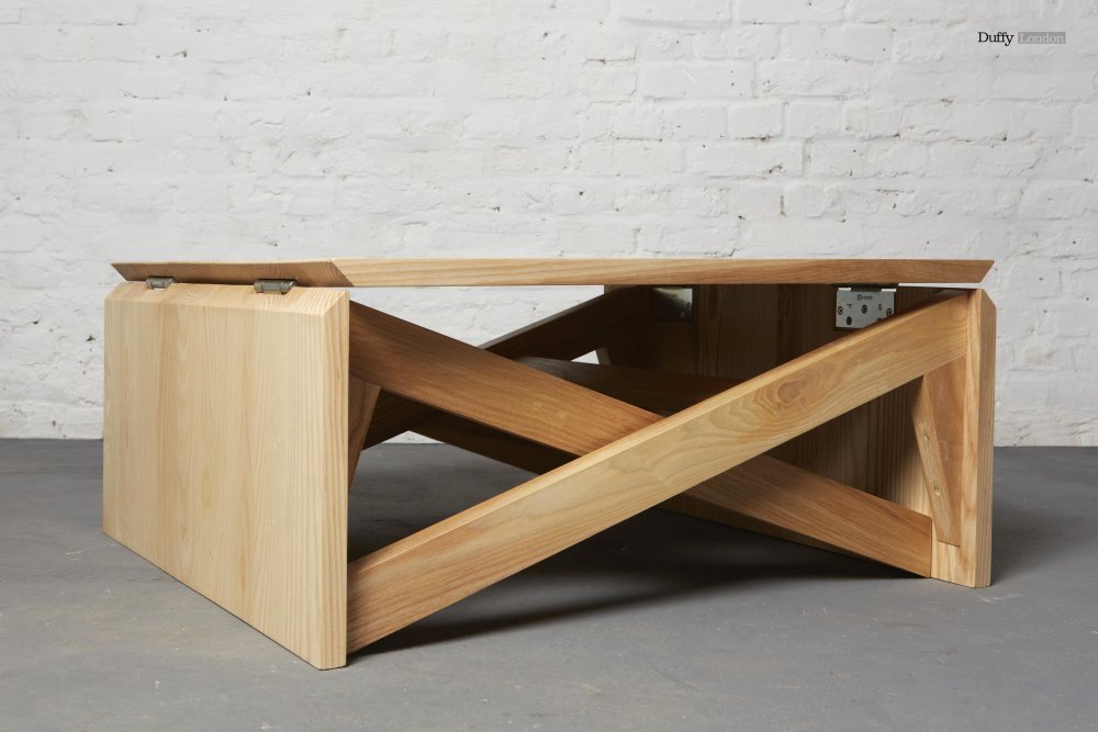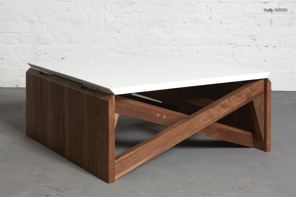 Coffee table officially named "MK1 Transforming Coffee Table", it's all you need to share the kitchen and the dining room with living room. Made from solid oak wood or a combination of walnut and birch plywood, it can be converted from a coffee table to a dining table in two simple movements. The dimension of the coffee table, which measures 35 cm in height, changes to the dining table in 75 cm and the width increases from 75cm to 135 cm. Ideal for maximum exploitation space.
