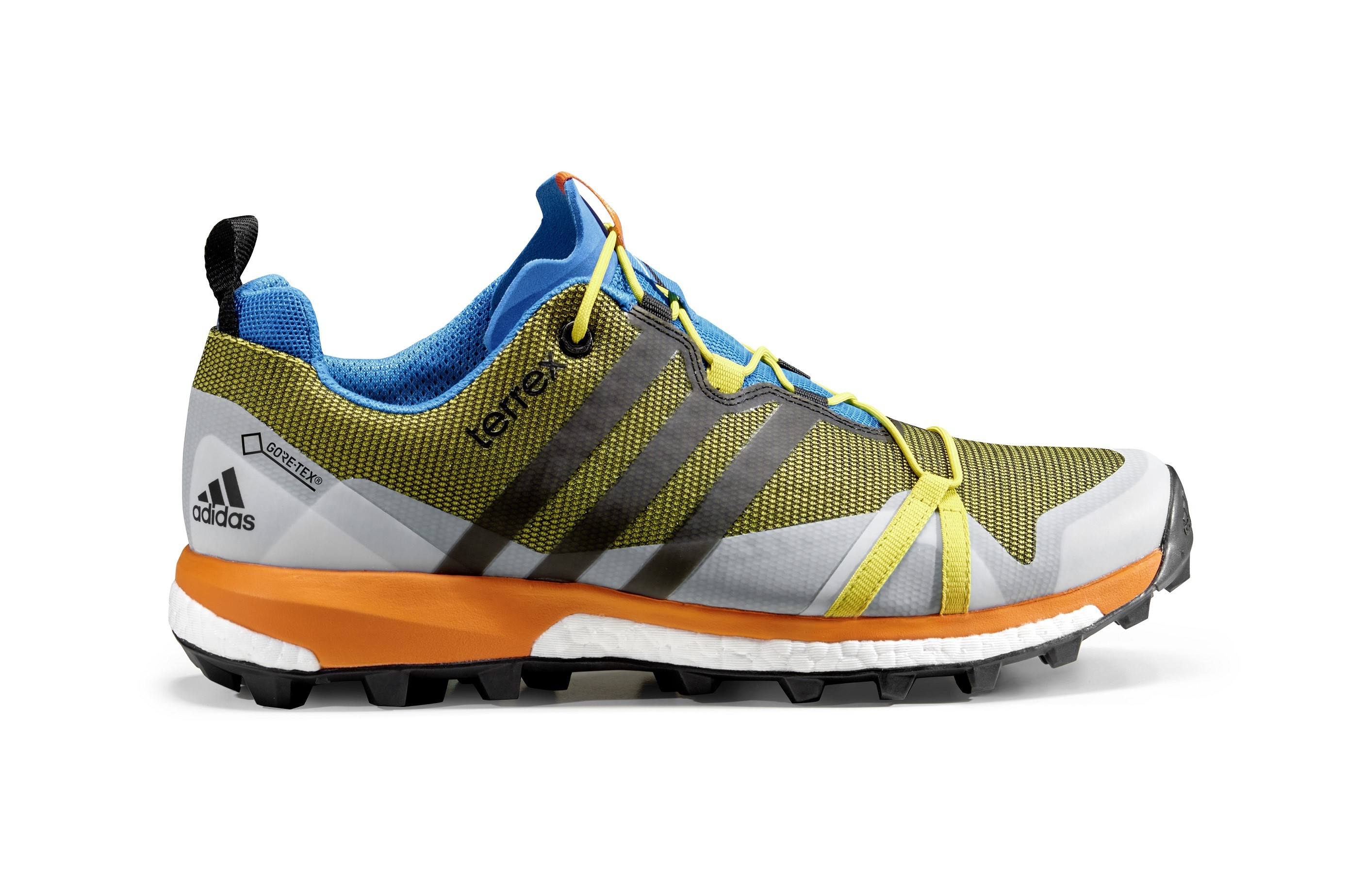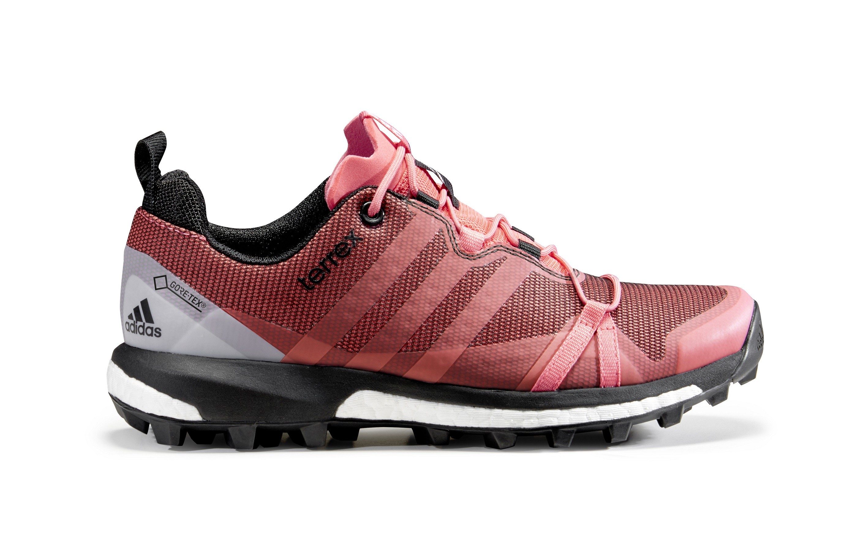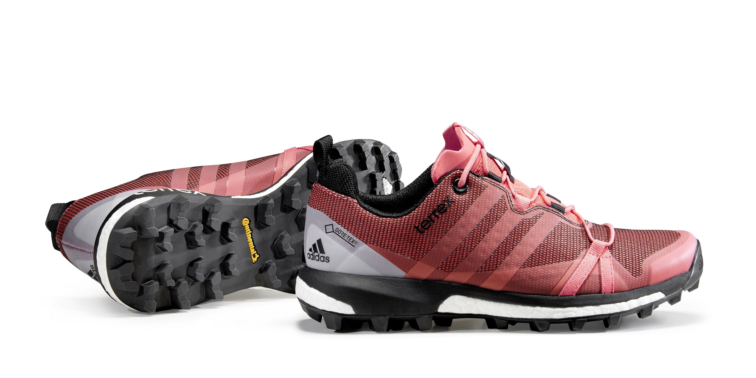 Do it right with Adidas Terrex Agravic GTX sneakers any terrain in any conditions. Technologically sophisticated trail shoes offer superior stability and grip. With help technologies Boost ensure maximum energy return during high-intensity and technically demanding mountain challenges, Continental studded rubber compounds and provide unrivaled grip. It is responsible for keeping the feet dry in all weather conditions membrane Gore-Tex. Available in (turquoise-orange) 355g men's and (dark pink) 305g women's models. No goal is too steep for the Adidas Terrex Agravic GTX!