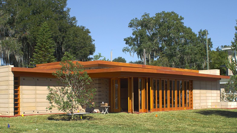 Now, after 74 years, one of the facilities has been erected in Florida on a college campus Florida Southern College. The one-story building is part of about 60 houses designed by the late American as part of the project "Usonian homes"– family houses, accessible to the average family. The house, which they built in Florida, does not serve the original purpose of a living environment, but is part of the complex Sharp Family Tourism and Education Center - a gallery and visitor center that hosts exhibitions of Wright's work and life. The house also has reproduced furniture that is Wright designed for the presented project.