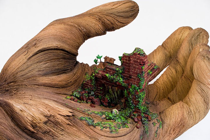 To design your sculptures Christopher David White uses clay and creates extremely realistic with it wood look. "Often, the process of change happens almost imperceptibly. Because of this, we become attached to the world around us and expect things to stay the same. Therefore, we take everything we experience for granted. But permanence is the greatest illusion", said the artist about his work.