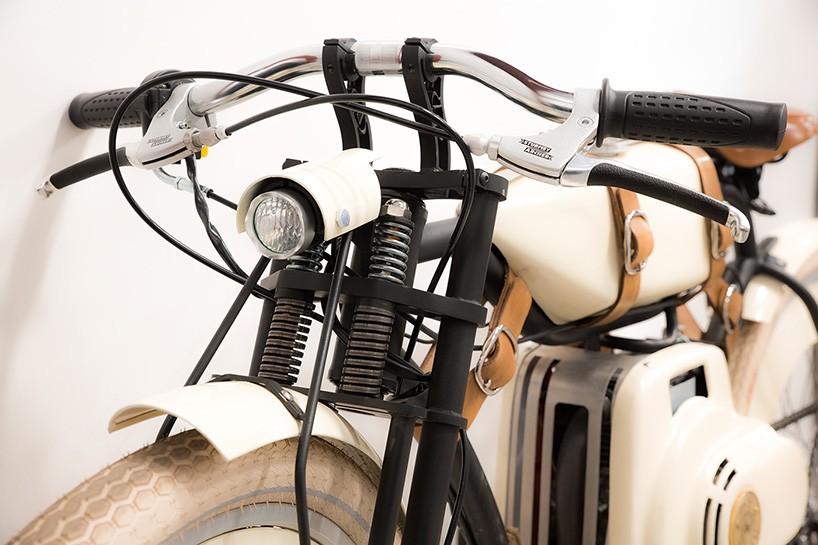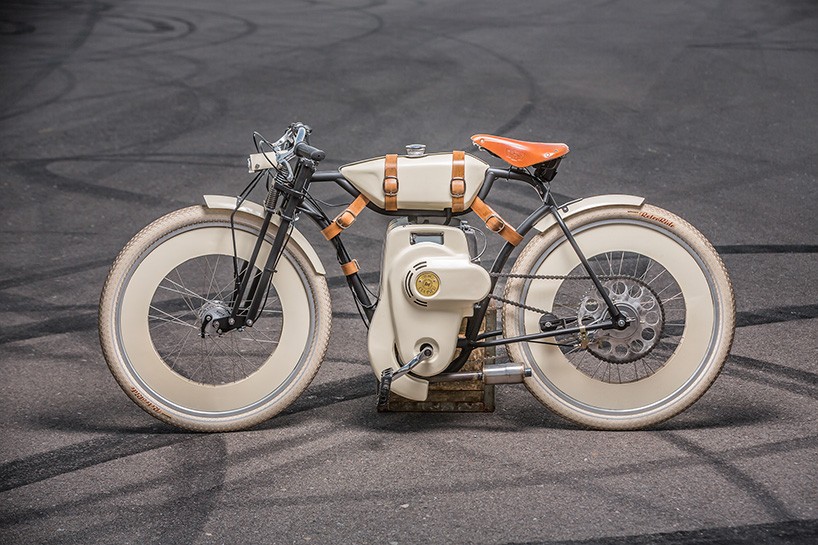 The appearance of the motorcycle is like this retro, to be even more retro. The designer drew his inspiration from the motorcycles of the year 1920. It's really hard to define whether it's a motorcycle or just a slightly more 'polished' bike, but nothing for that, because it looks straight fantastic. You can see a lot of details on the motorcycle that take us back to 20s of the 19th century. They certainly add the finishing touch leather straps, which fasten the fuel tank to the engine frame.
