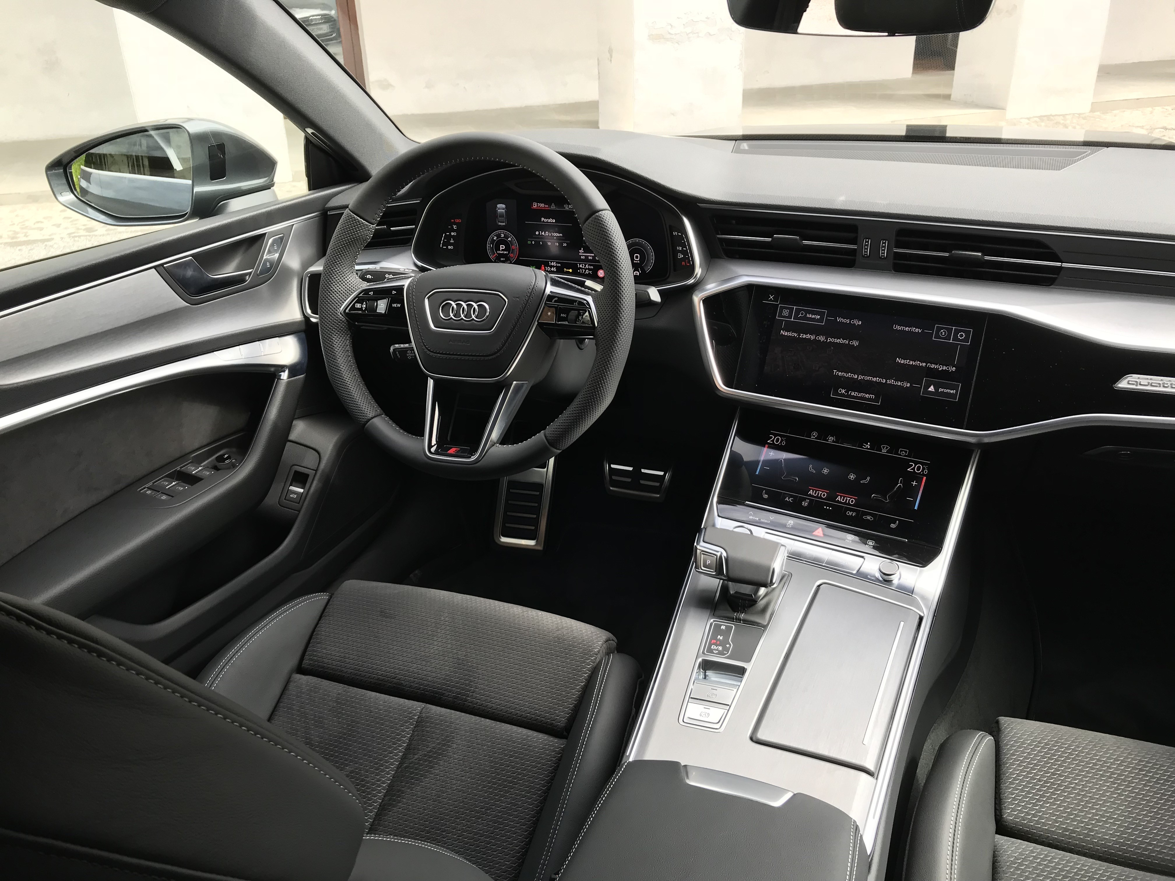 The image of the new Audi A7 Sportback certainly is moveable. It is a car that belongs to the so-called niche class and we classify it between class C and D. It is 'gran tursimo' with a new design design and striking headlights. The rear ones extend across the entire width of the car, and the front ones stand out no less. We have a choice here as well matrix LED-headlights, recognizable by their blue color laser in the spotlight. Sharp lines are those that emphasize the exterior image of the car, rims in sizes from 18 to 21 inches but they only confirm the sovereign image.
