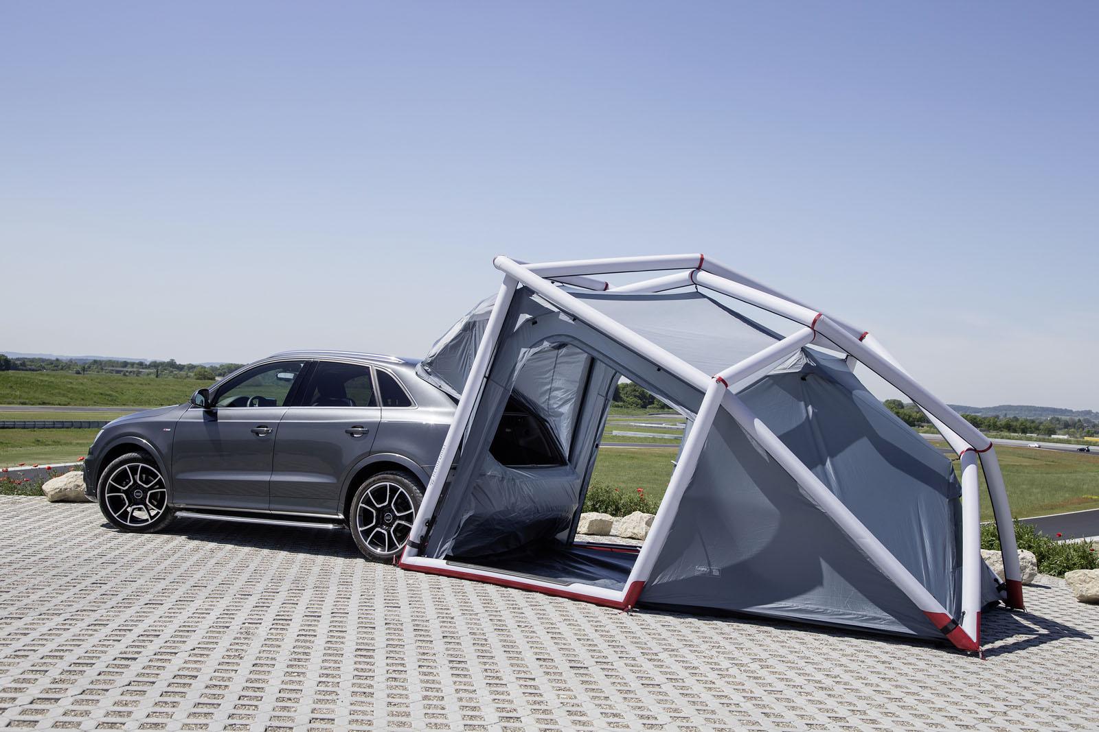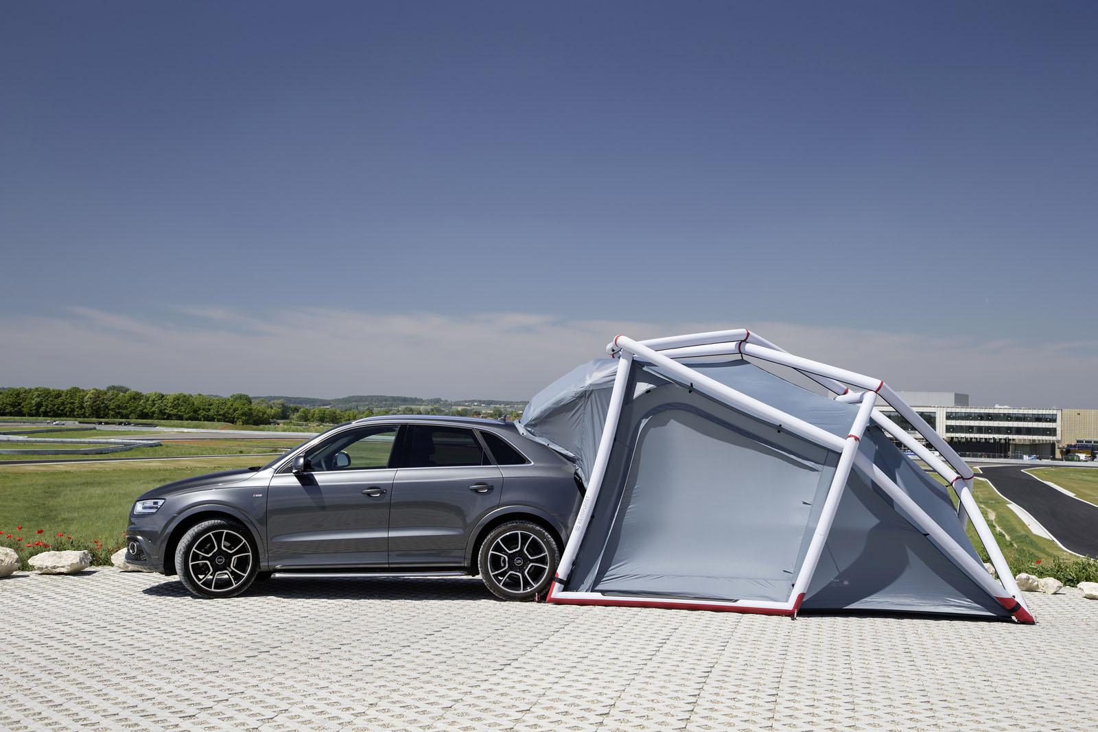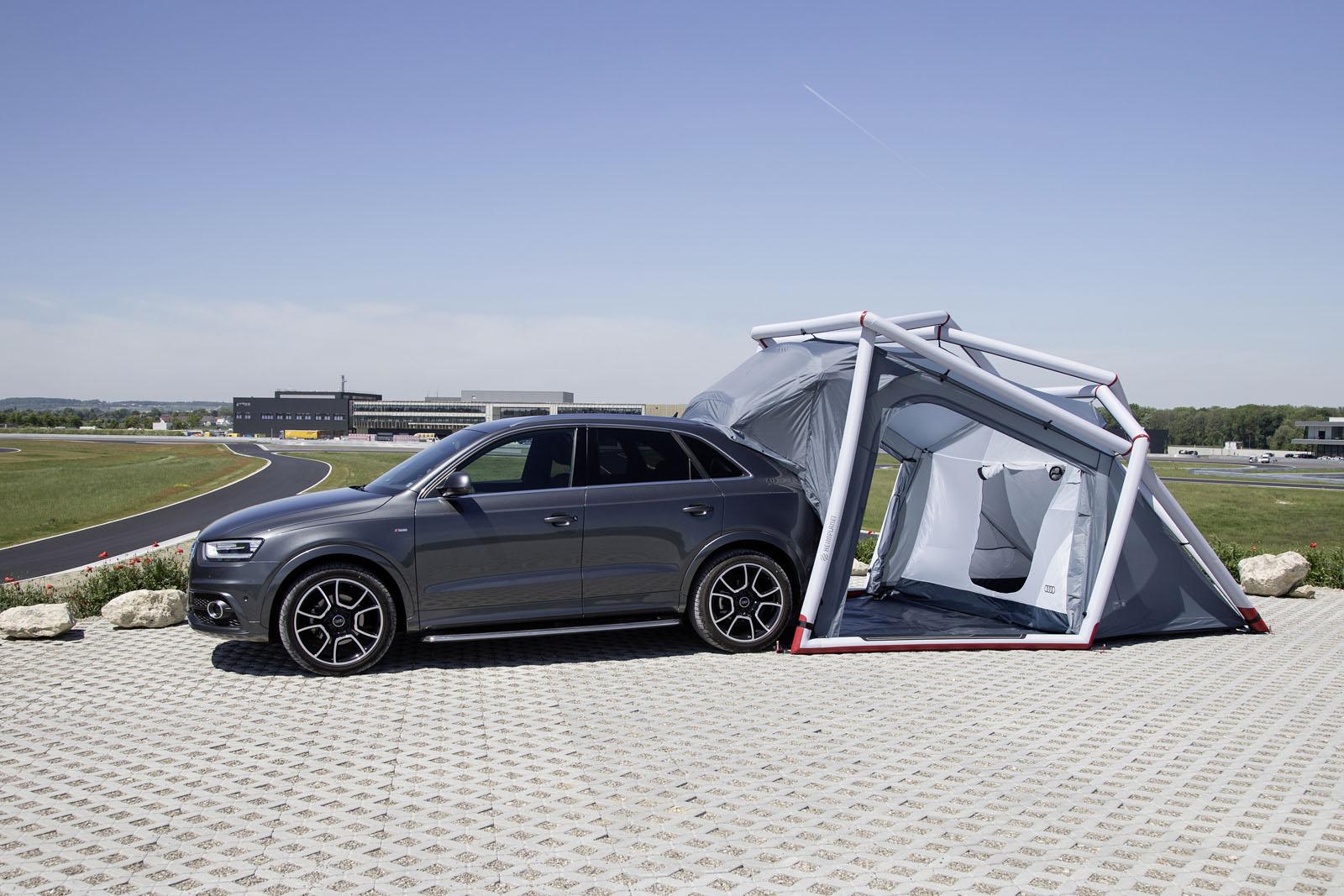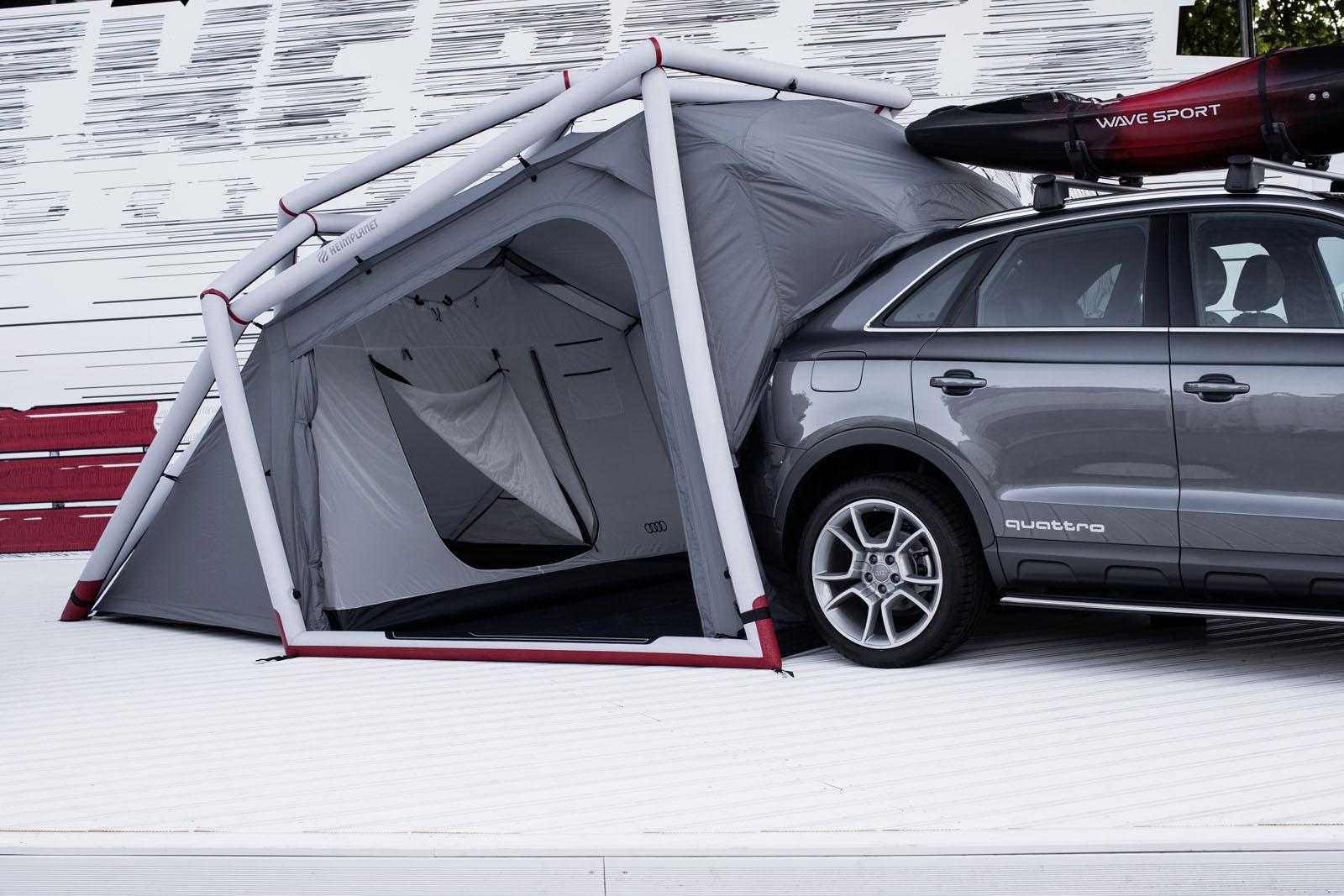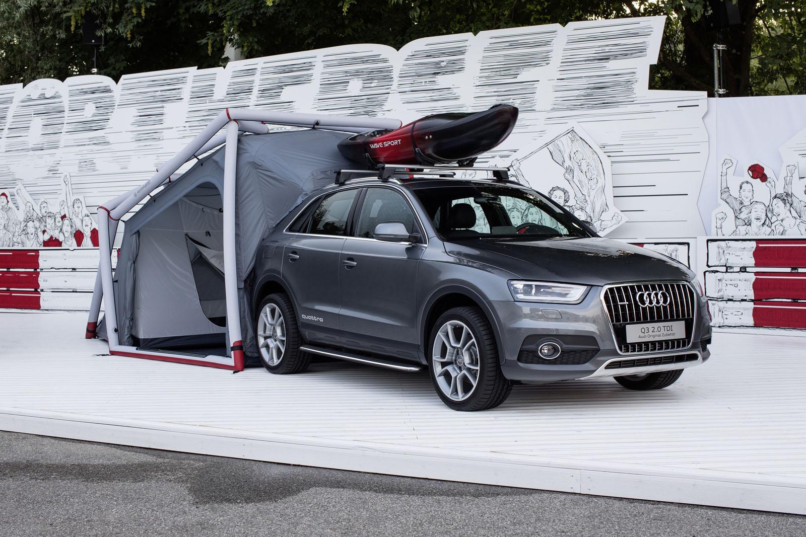 At the Wörthersee 2014 motor show, Audi presented a special version of the Audi Q3 model, which is designed or equipped as the ultimate leisure vehicle. Thus, in the equipment package you also get a real inflatable tent, which forms a holiday unit with the vehicle.