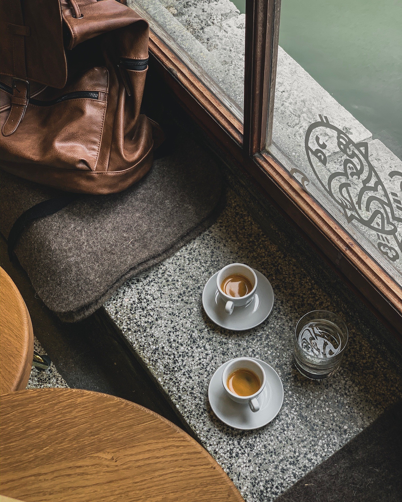 They took care of the interior this time as well; they always try to ensure that the equipment does not take up space, if it has some quality of its own. Given that they are in Plečnik's environment, they are they just added their equipment to the original elements and designed the interior lightly, so that it coexists nicely with Plečnik's terracotta. They made chairs that allow you to sit low with a view of the Ljubljanica, and the main materials are: solid oak wood and brass, which also appears on the original faucets.