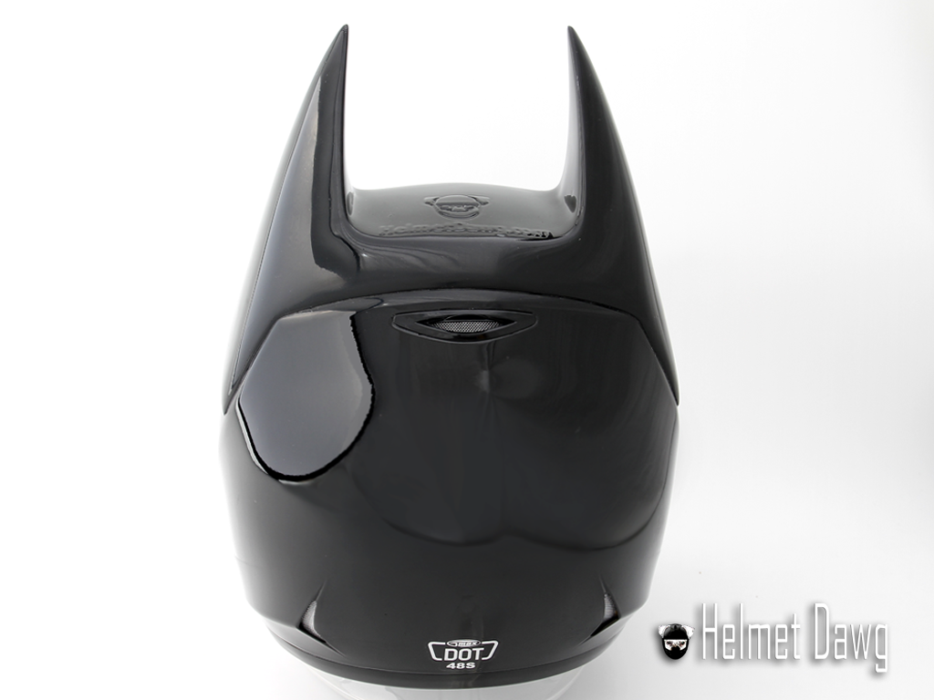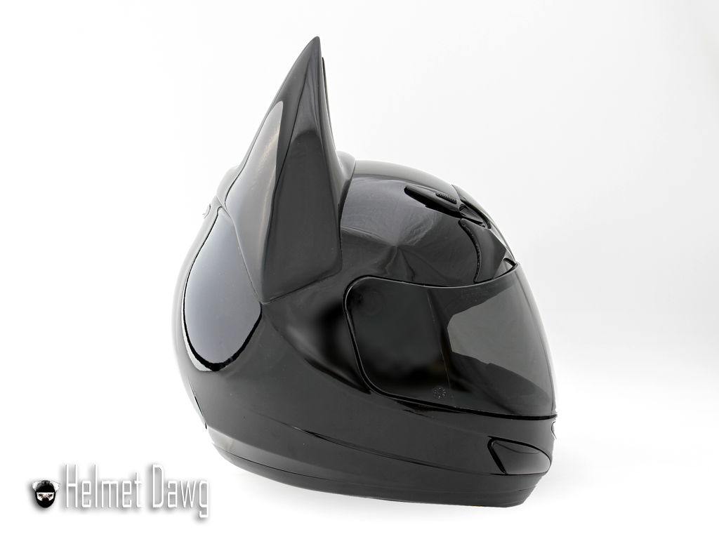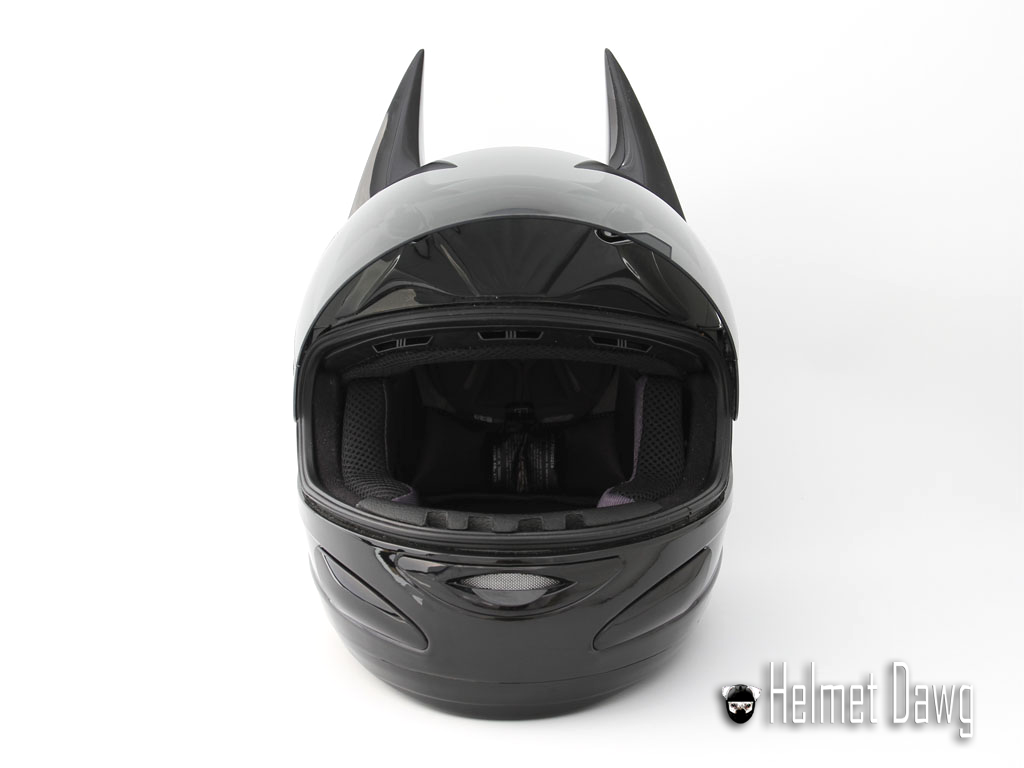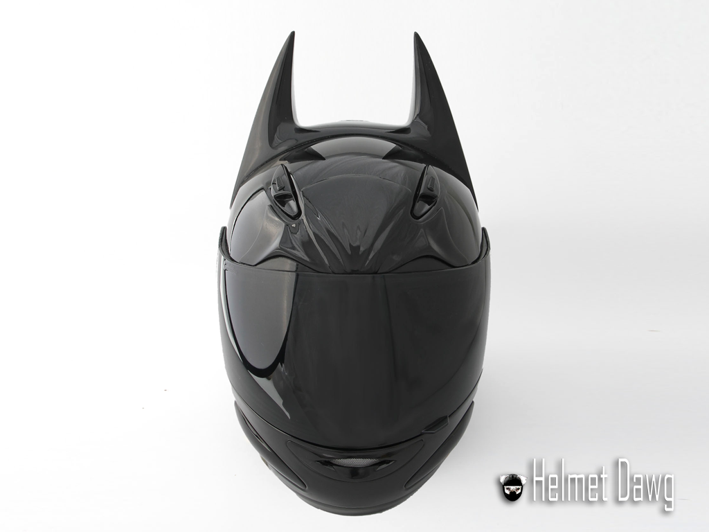 Batman's the helmet was conceived by the company Helmet Dawg, this is a company that has been producing protective motorcycle helmets for quite some time. A helmet HD100 is actually from the series GMax GM48S Platinum, who were given pointed ears and painted black, the dark knight's trademark.