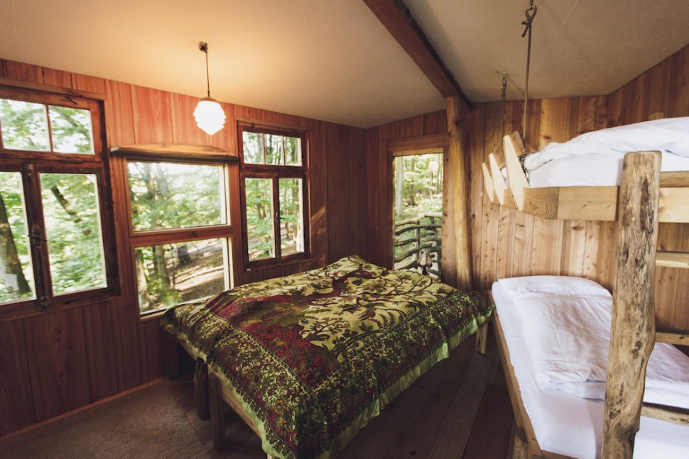 Cabins on the ground can accommodate four guests, cabins under the canopy, which are connected by a bridge, and eight people.