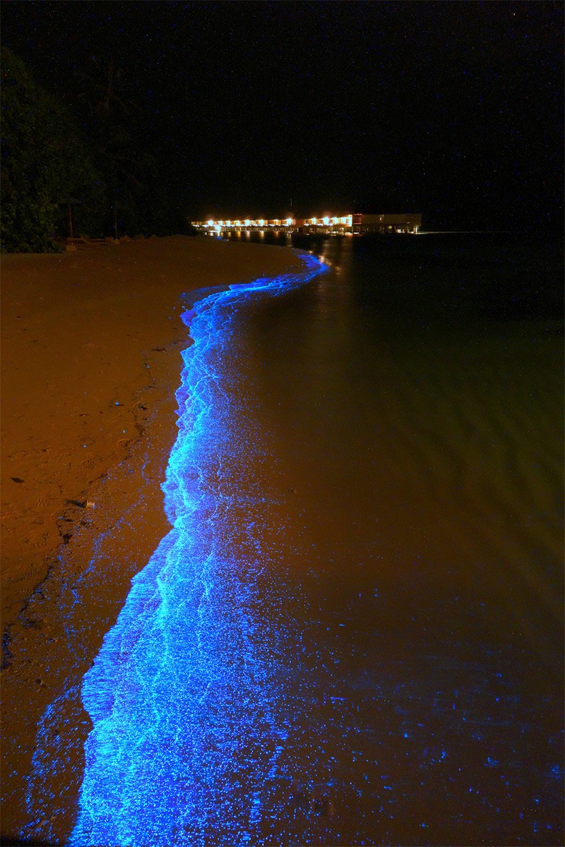 The beach was covered by several million of bioluminescent phytoplankton, which glows blue in the dark. These microscopic organisms glow in a similar way to fireflies, but the interesting thing is that under stress, i.e. in the case of stronger waves, they glow weaker. And although it is a phenomenon and chemical mechanisms that have been known for a long time, biologists are only now discovering the reasons for it.