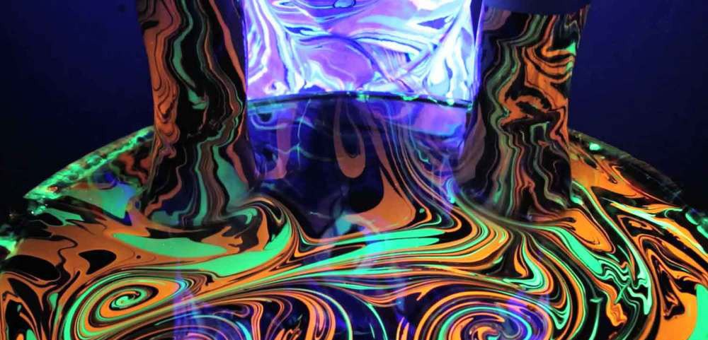 Drip and dip, body marbling is that simple. The procedure is as follows. We first submerge a part of the body into salt water (this allows the color to remain on the skin) and wait for it to dry. Then just dip it in the water in which we soaked it earlier any color for marbling and the skin gets dressed in no time colorful patterns. Enjoy the magical world of marbling! You can see how it looks live in the videos above.