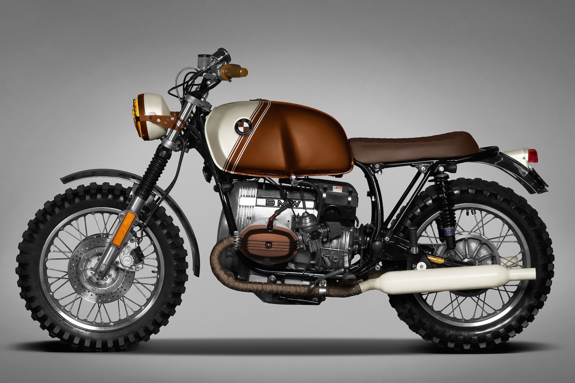 After the major works were completed, they began to change even smaller details on the motorcycle, within which the R45 got a smaller rear turn signal in black, a smaller rear light and chrome-clad speedometer. The finishing touch is represented by the retro-designed levers dressed in a brown color combination, which coincide with many other details of the motorcycle.