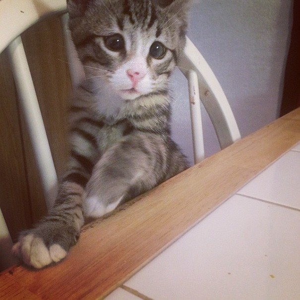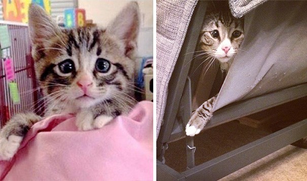 When Bum was old four months, together with four other members from the same litter, brought him to an animal shelter San Diego Humane Society, where they instantly fell in love with him. According to the administrators, it is Boom shy in the company of strangers, but once he gets to know them, his inhibitions loosen and he allows himself to be cuddled by everyone. He loves other cats, likes to sleep under the covers and helps raise the young, and also hangs out with injured cats during their rehabilitation. Bum is not only happy like that, he is also hero and role model. You can follow him on Instagram worried_eyes_aka_bum.