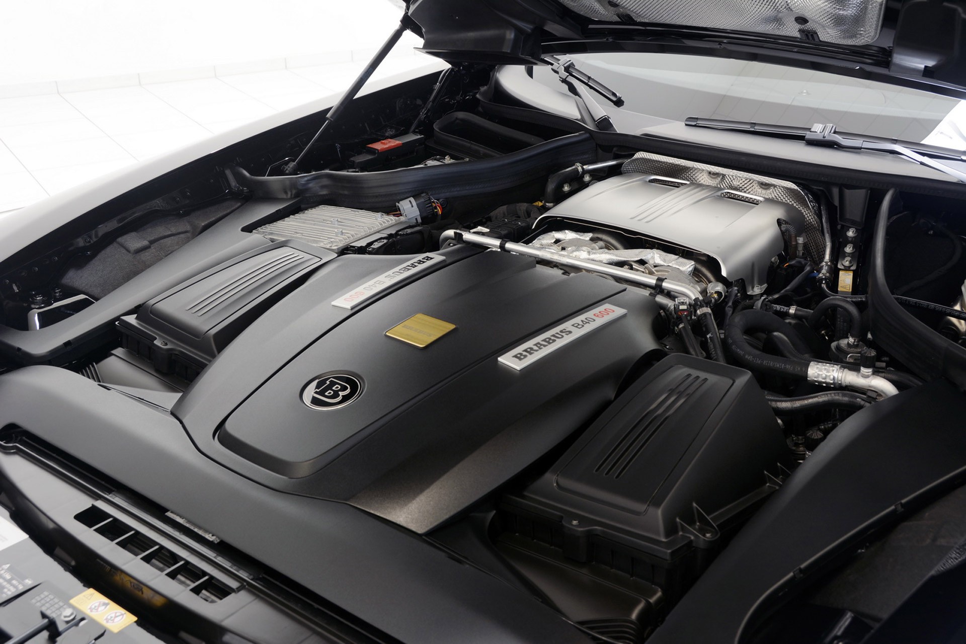 The system for fuel injection, ignition and clear turbine pressure. Brabus opted for 20-inch tires at the front and 21-inch tires at the rear, adding a new adaptive suspension, titanium exhaust system and electronic control of shutters. Plus, there's a bunch of aerodynamic goodies he used the same for the type of carbon fiber used in Formula 1. All elements were developed in the wind tunnel, and the aerodynamic kit includes the front lower part of the bumper, the side air intakes and the rear diffuser. At Brabus, they say that they managed to increase it push to the ground, and at the same time improve airflow around the car.