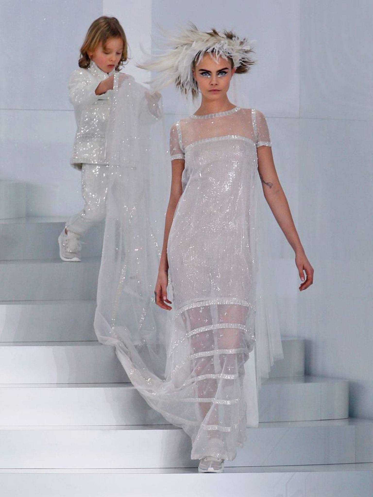 All of us who care about the world of fashion, twice a year we can't wait for Paris Fashion Week, during which a fashion house Chanel offers a glimpse into the most beautiful fantasy wardrobe. We are used to the creative head of the house, Karl Lagerfeld, always surprises with something new and as beautiful as a dream. This time, however, he went beyond all limits, as he styled sneakers with prestigious pieces of high fashion. Admittedly, these are no ordinary sneakers, as Chanel's are made of python leather and tweed, decorated with lace and pearls, and they require as much as 30 hours of manual labor to make, but still - would you wear a pair of sneakers with a wedding dress?