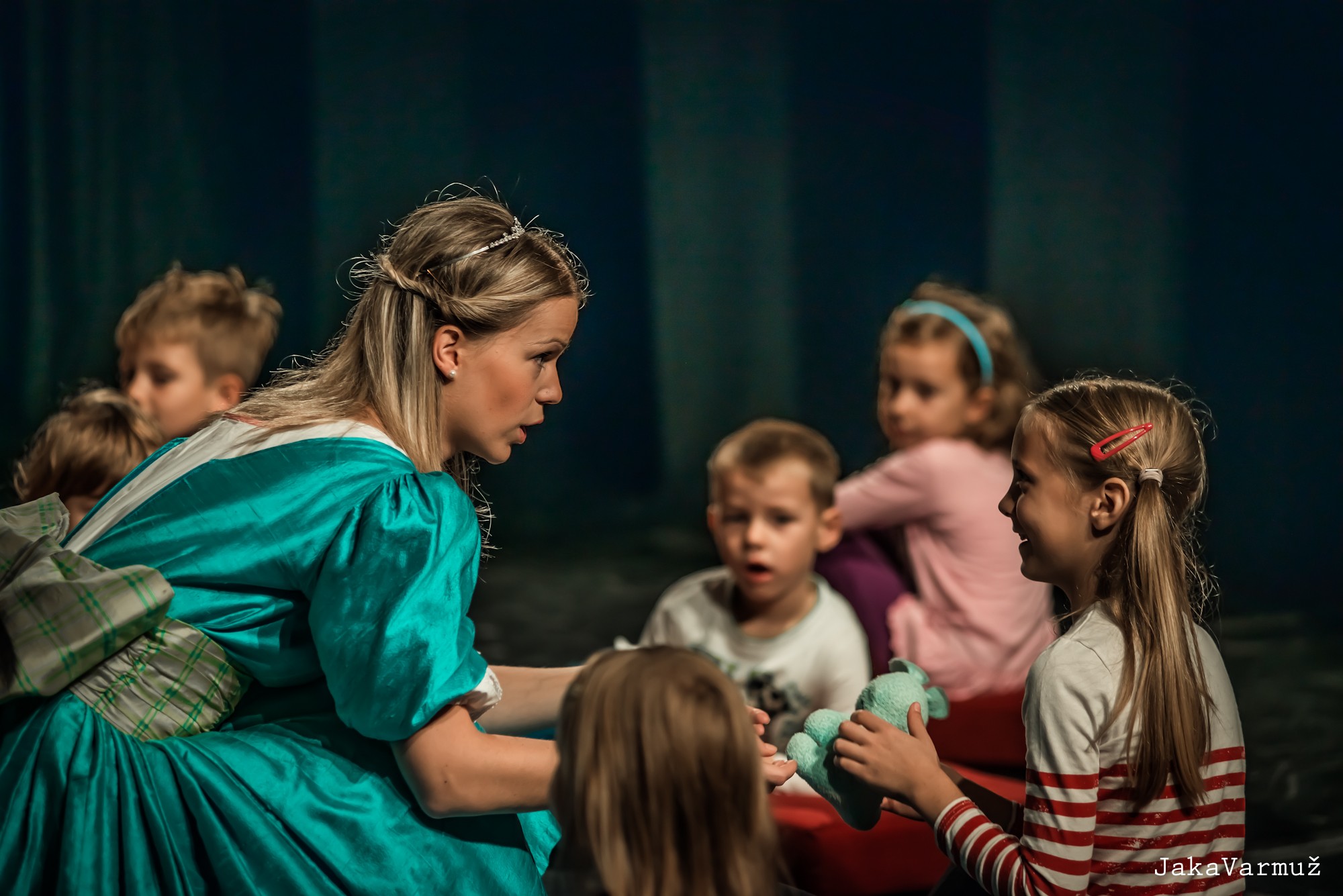 This time it will Princess Polonca (plays it Tjaša Hrovat) told the story of a princess to whom a frog returns a golden ball lost in a puddle, but asks for friendship in return. And this friendship in the true sense of the word, where friends share a table, a plate and a bed. Princess he promises the frog everything, but as soon as he gets his ball, he forgets the promises. A frog he demands his own and follows her to the court, where the king, the princess's father, also takes his side. Disgusted, the princess slams the frog into the wall, but then it turns into a prince.