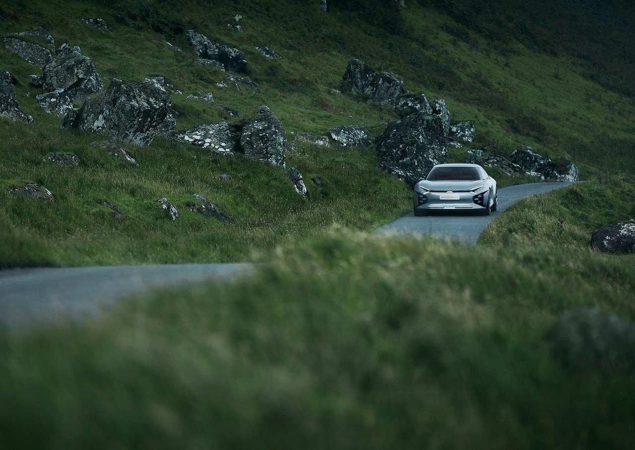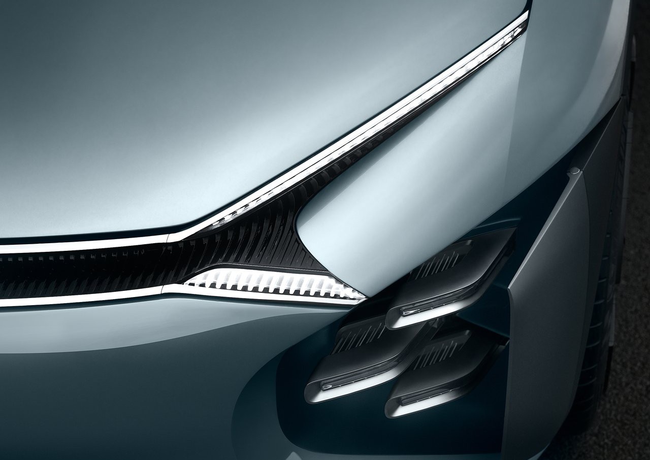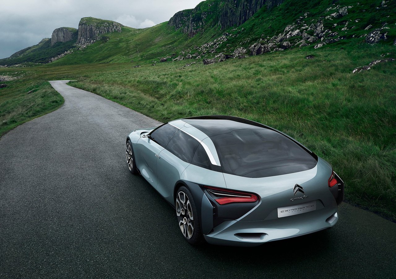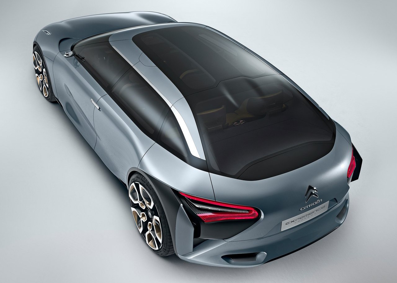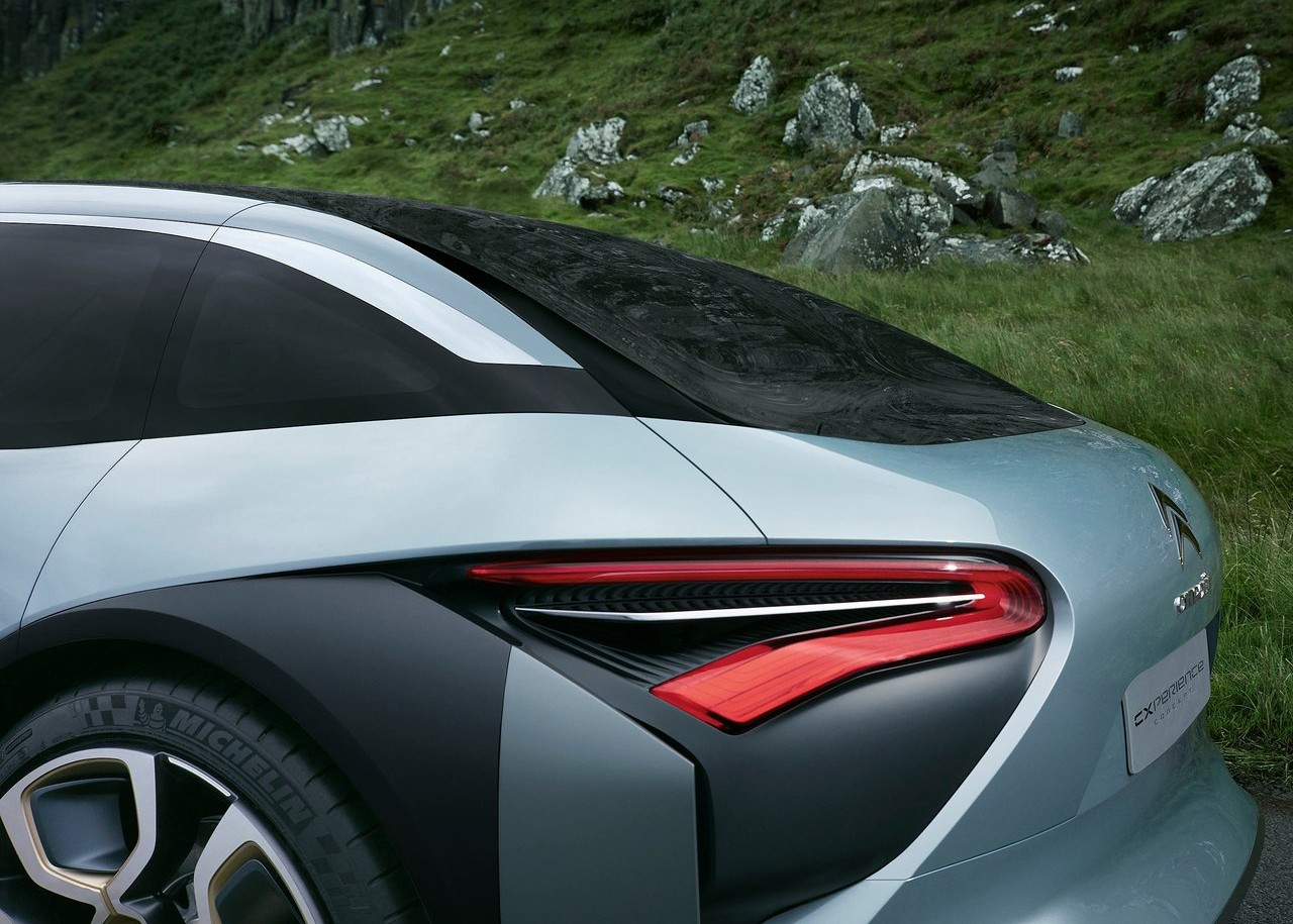 With this concept, Citroën put design and technology in the foreground. In the front bumpers, there are controlled air intakes on the sides movable flaps, the last one spoiler and ensures better aerodynamics of the hybrid. Like the front, so are the rear V-shaped lights.