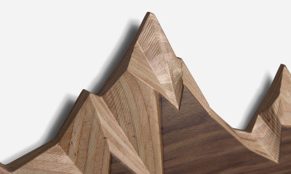 Coat Range in which he carved his name Brave Space Design it is a hanger inspired by the mountains, more precisely the American mountains The Grand Tetons. You hang the clothes on the peaks instead of on hooks, and the combination creates a feeling of three-dimensionality and snowy peaks walnut and maple wood.