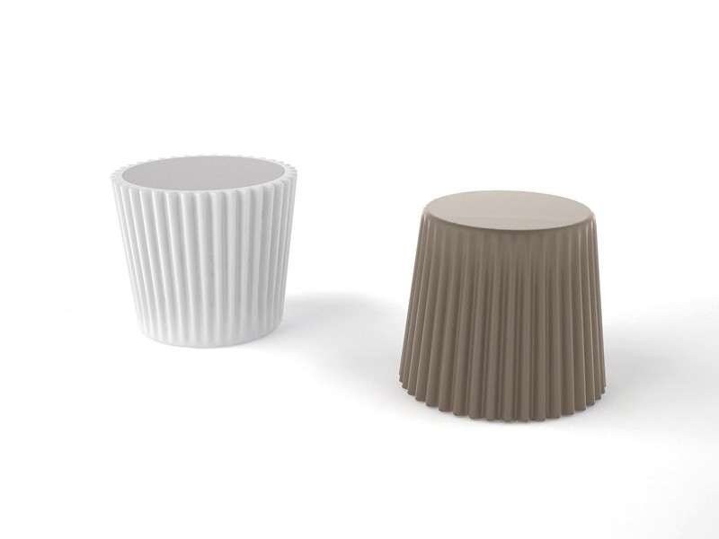 Enlarged, oversized paper baskets for sweet indulgence grow across the space, taking the shape of their inspiration. Polyethylene furniture in white, anthracite gray, red, dove gray or green, it brings a sense of cuteness to any room. The design stamp was left by a Japanese designer Ryosuke Fukusada.