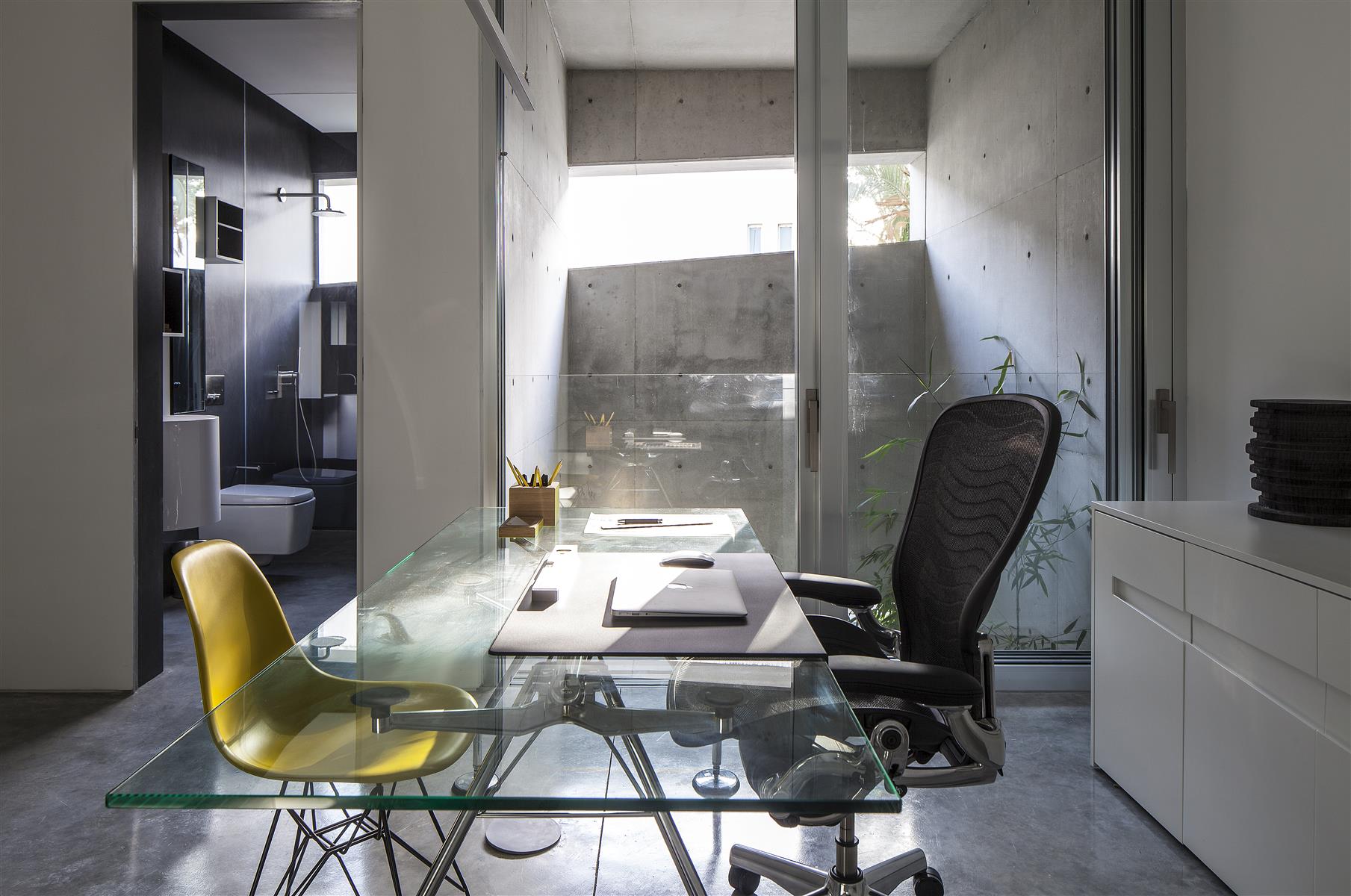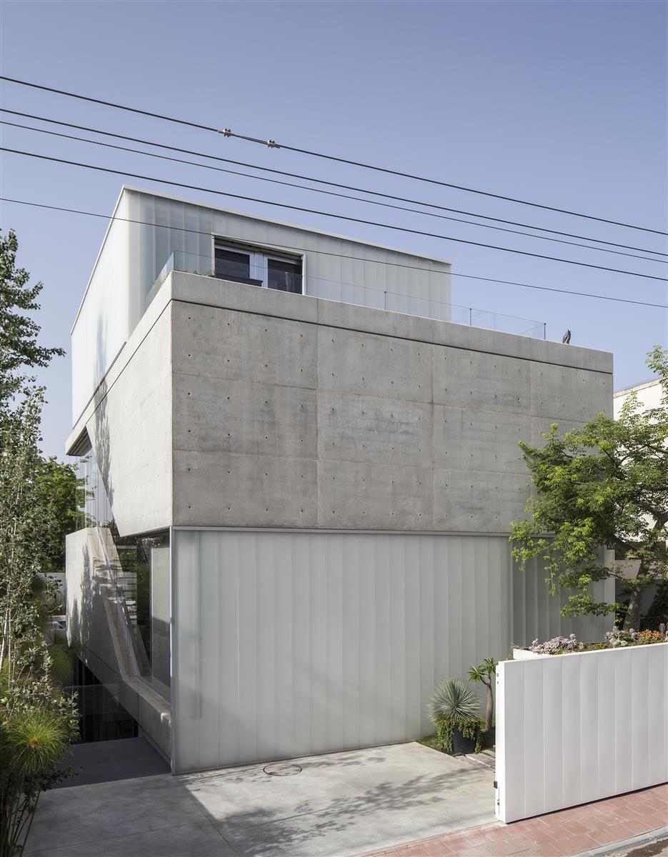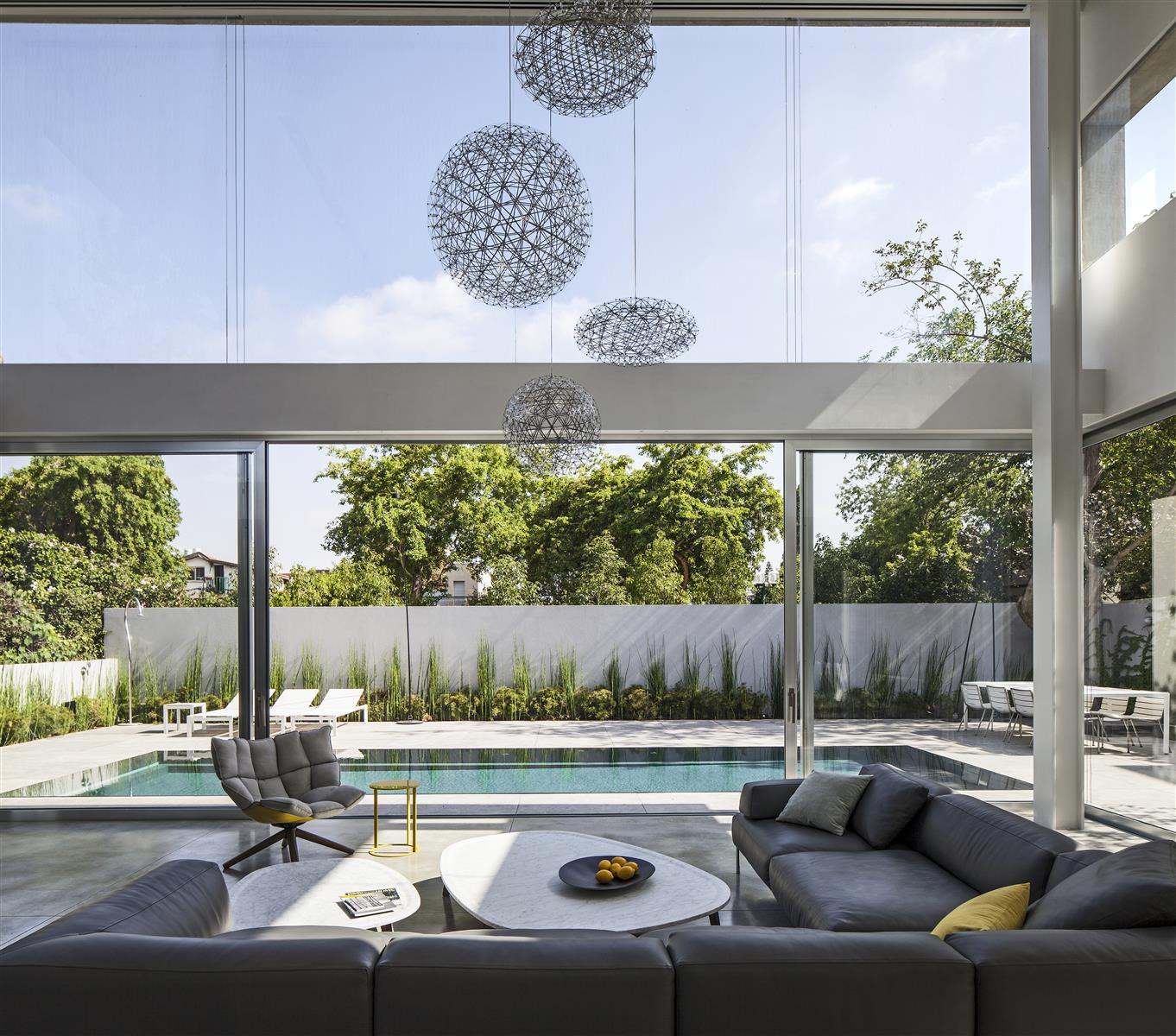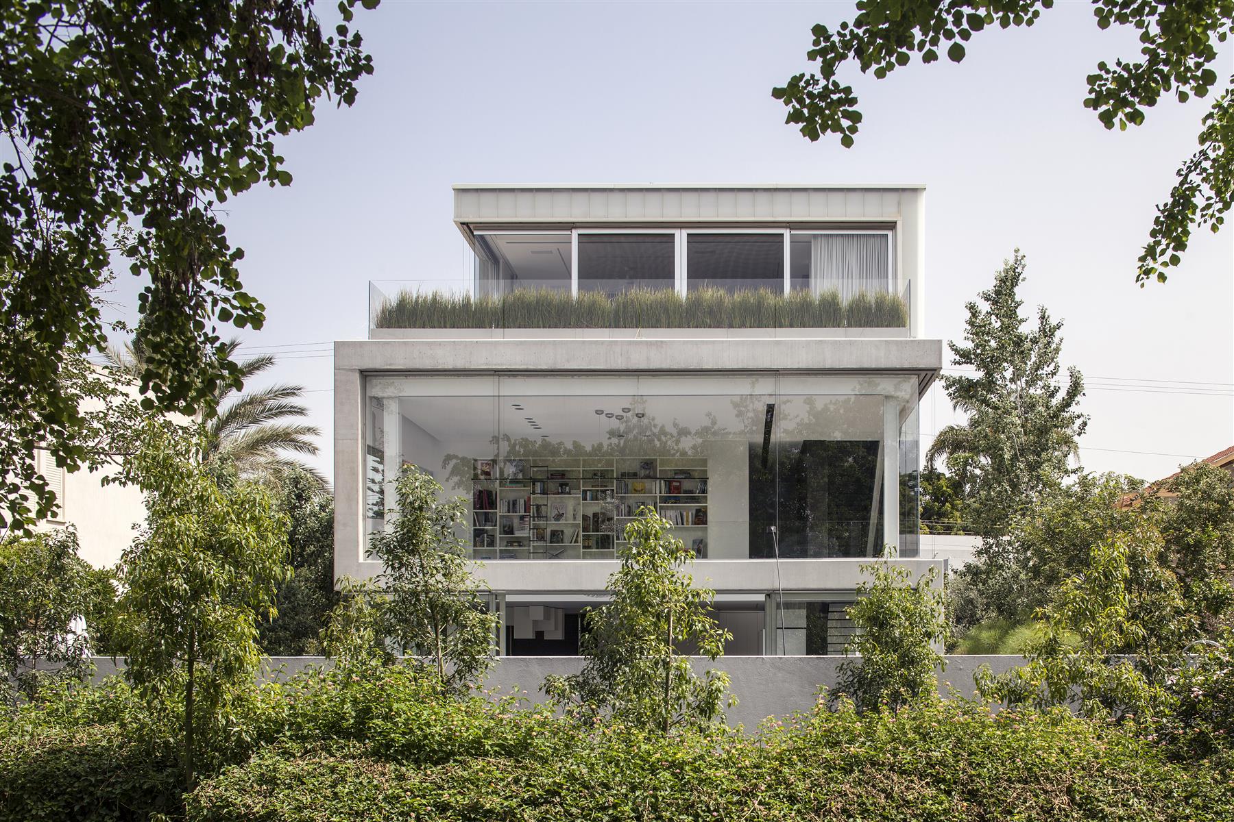 The modern family house Concrete Cut House in Tel Aviv consists of rectangular prisms stacked on top of each other, and between its glass panels an endless line of concrete snakes like a snake. Hence the name of this luxurious home of refined design, which draws colors from the outside environment.