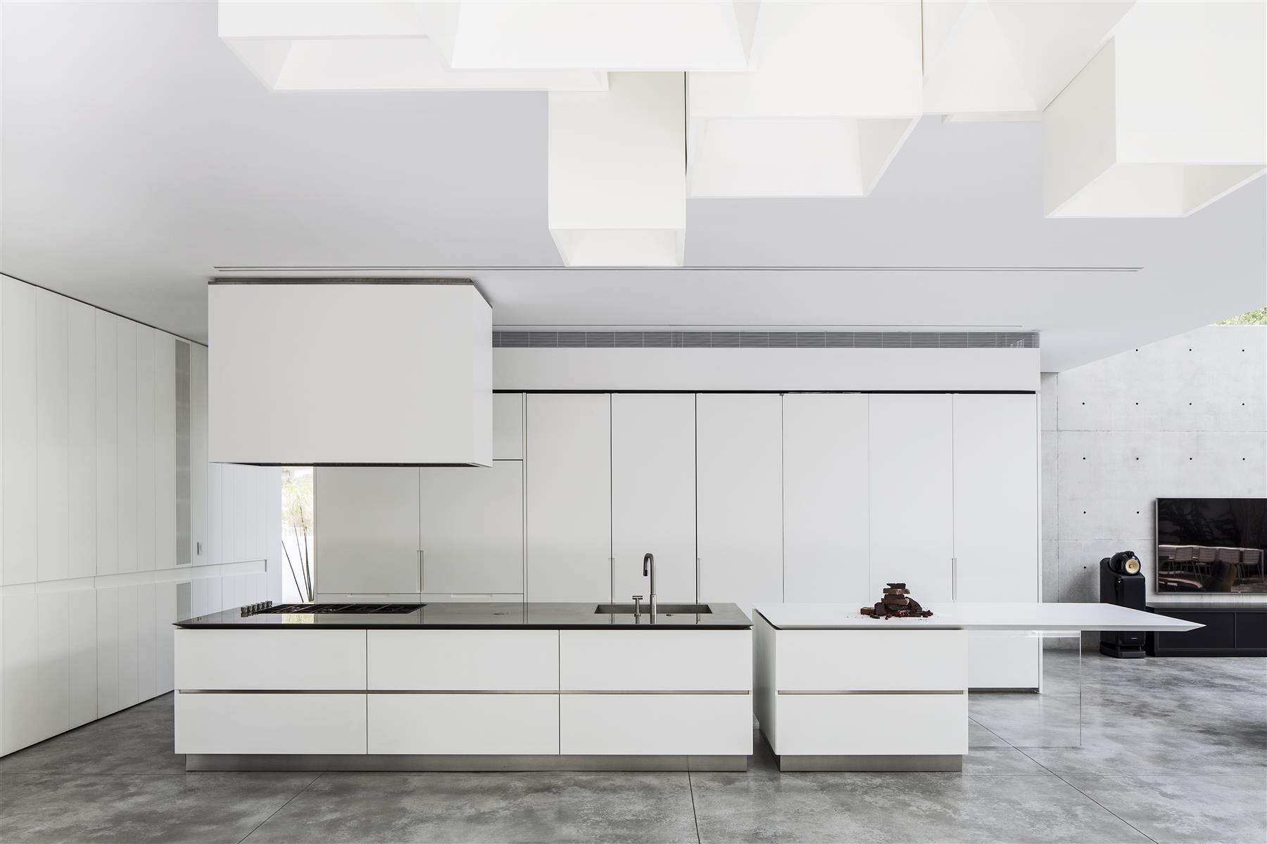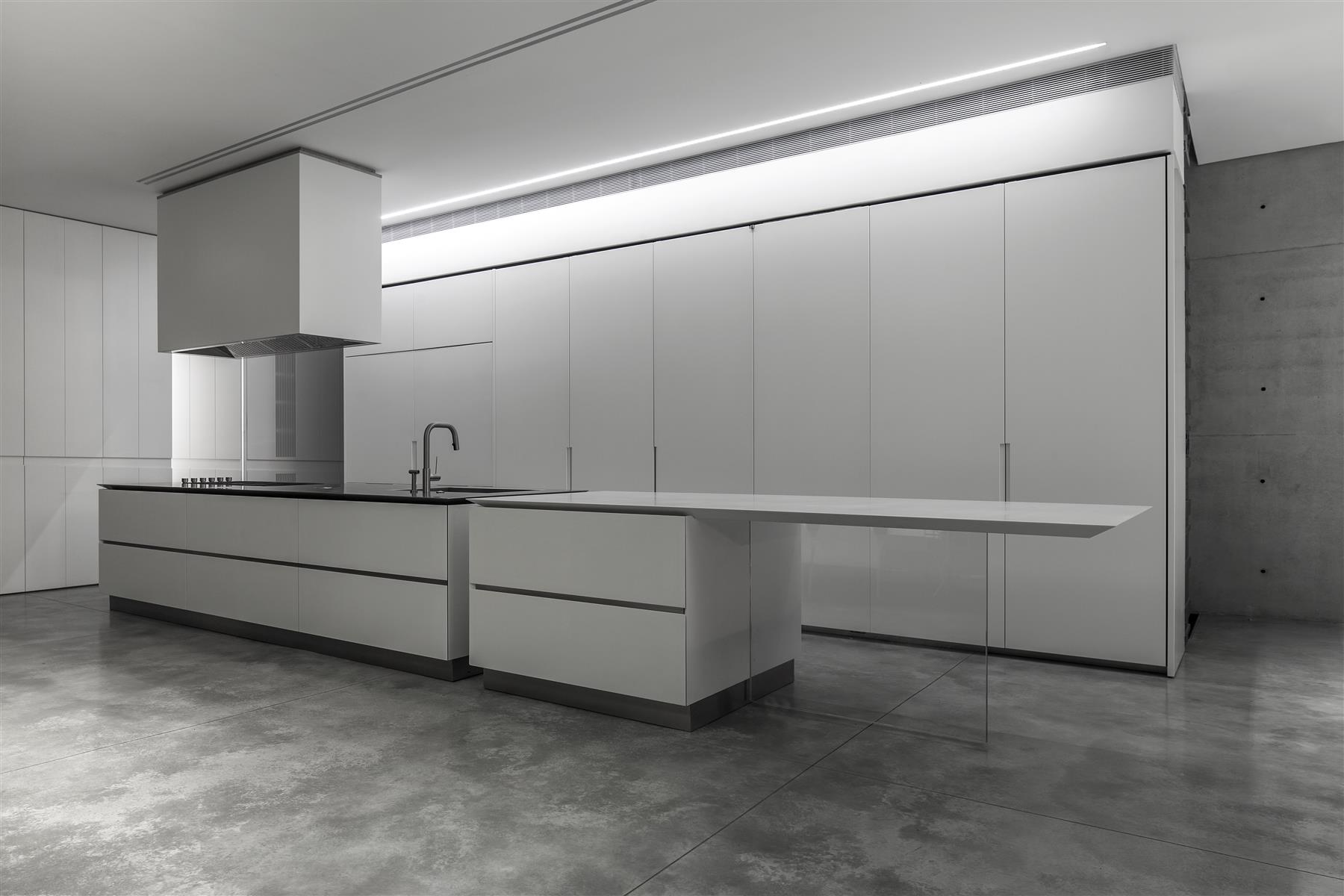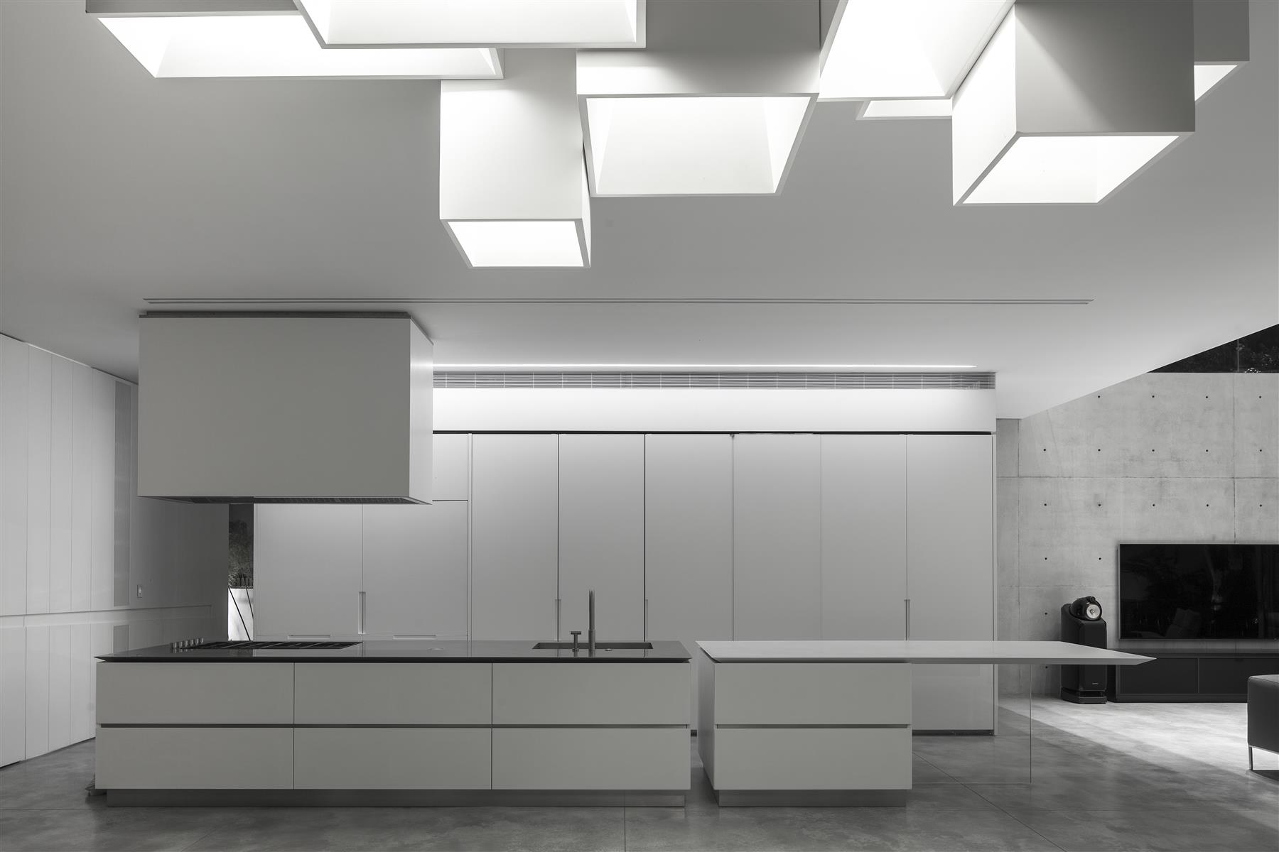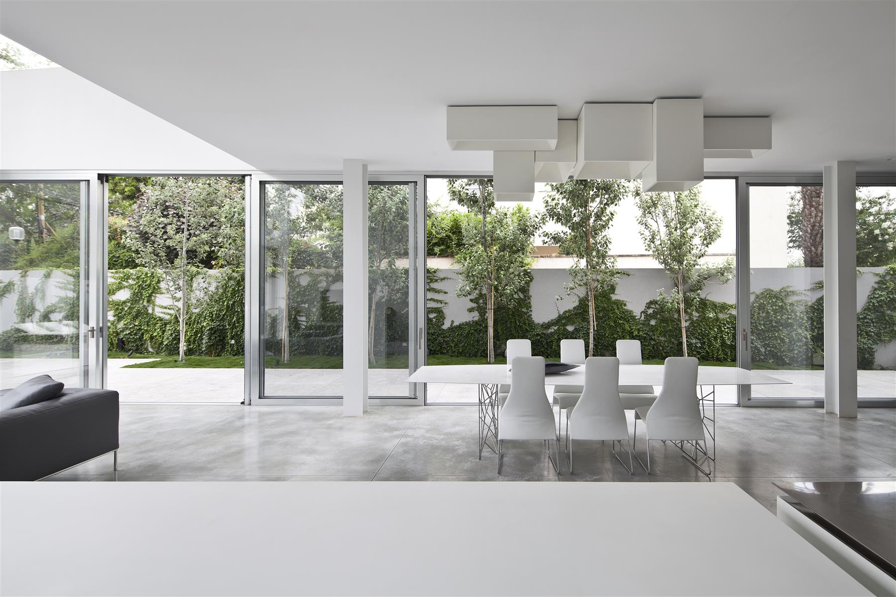 The modern family house Concrete Cut House in Tel Aviv consists of rectangular prisms stacked on top of each other, and between its glass panels an endless line of concrete snakes like a snake. Hence the name of this luxurious home of refined design, which draws colors from the outside environment.