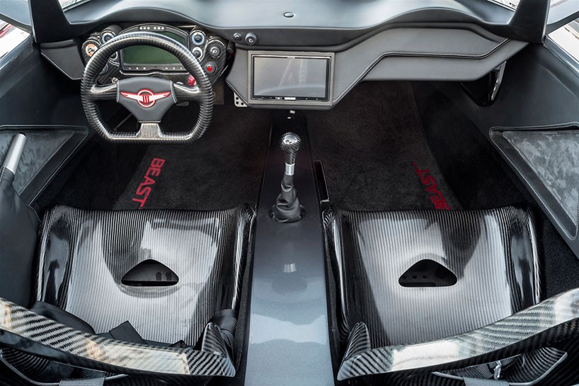Rezvani Beast it is beastly super sports coupe from the United States, which breaks the asphalt with 19-inch rims (width 235 mm front and 295 mm rear). Both the body, steering wheel and seats of the toxic roadster are covered in carbon fiber, and the air can cut the car at a speed of up to 265 km/h.
