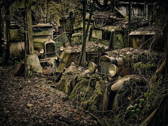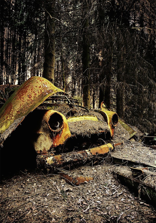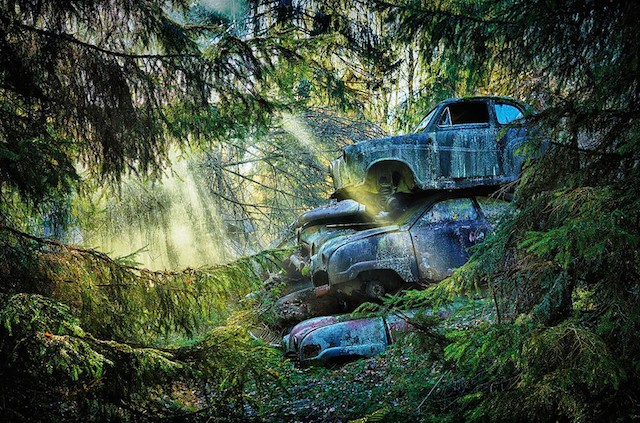 German photographer Dieter Klein chose an interesting subject for his photo series. He is looking for "natural" car cemeteries around the world, places where people have laid their cars to rest and are now overgrown or merged with the environment. Fascinating.