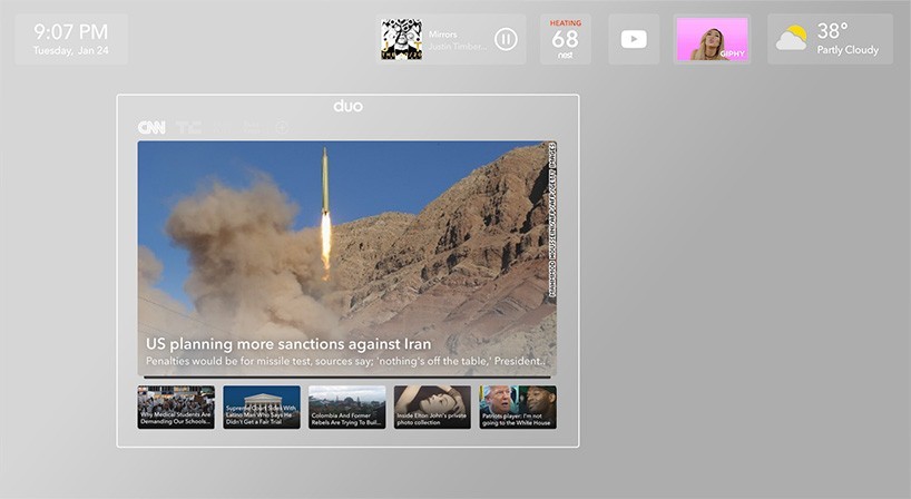 The Duo smart mirror is part mirror, part computer. You can use it to talk, play music and videos, play games, and control smart home devices like your thermostat.