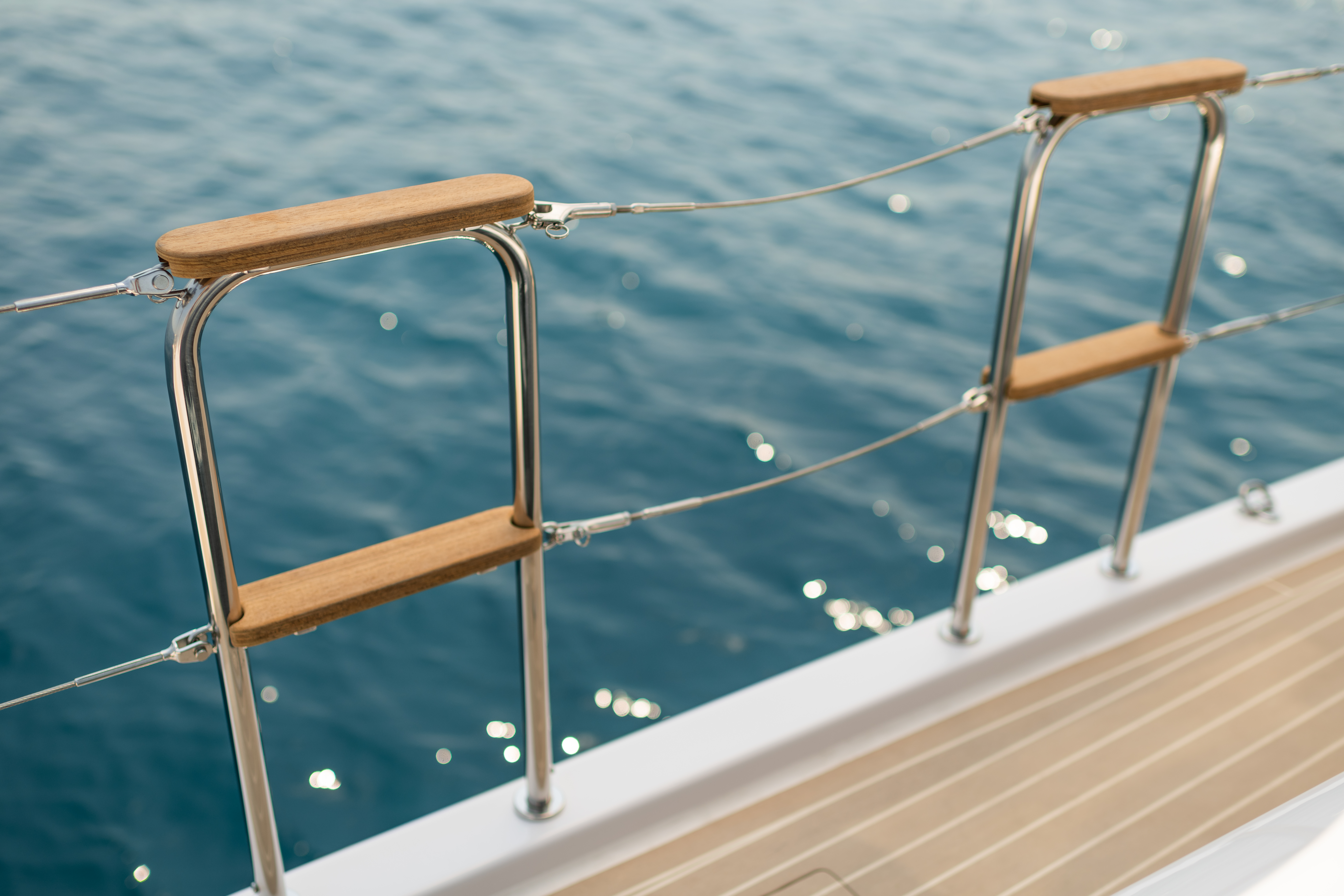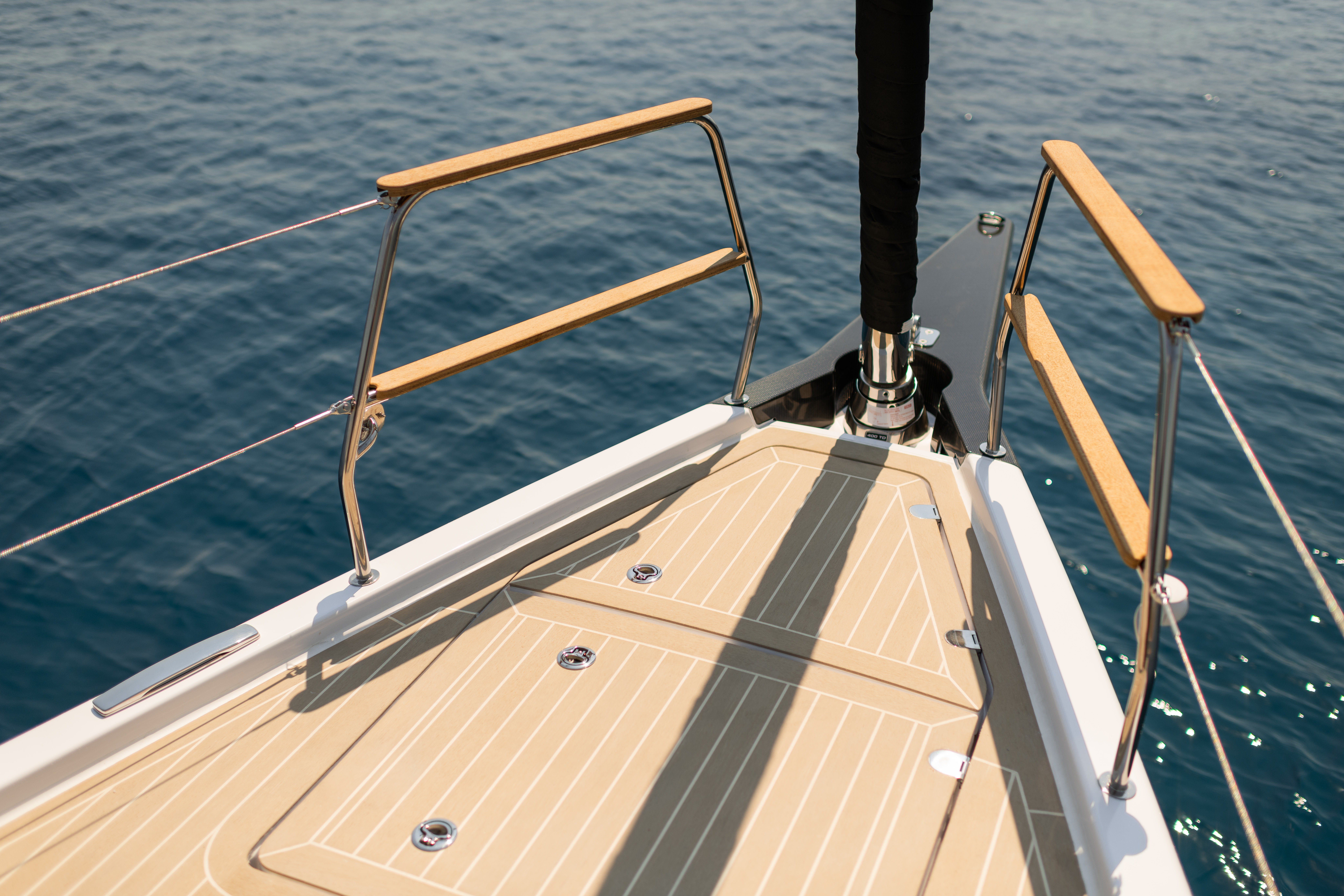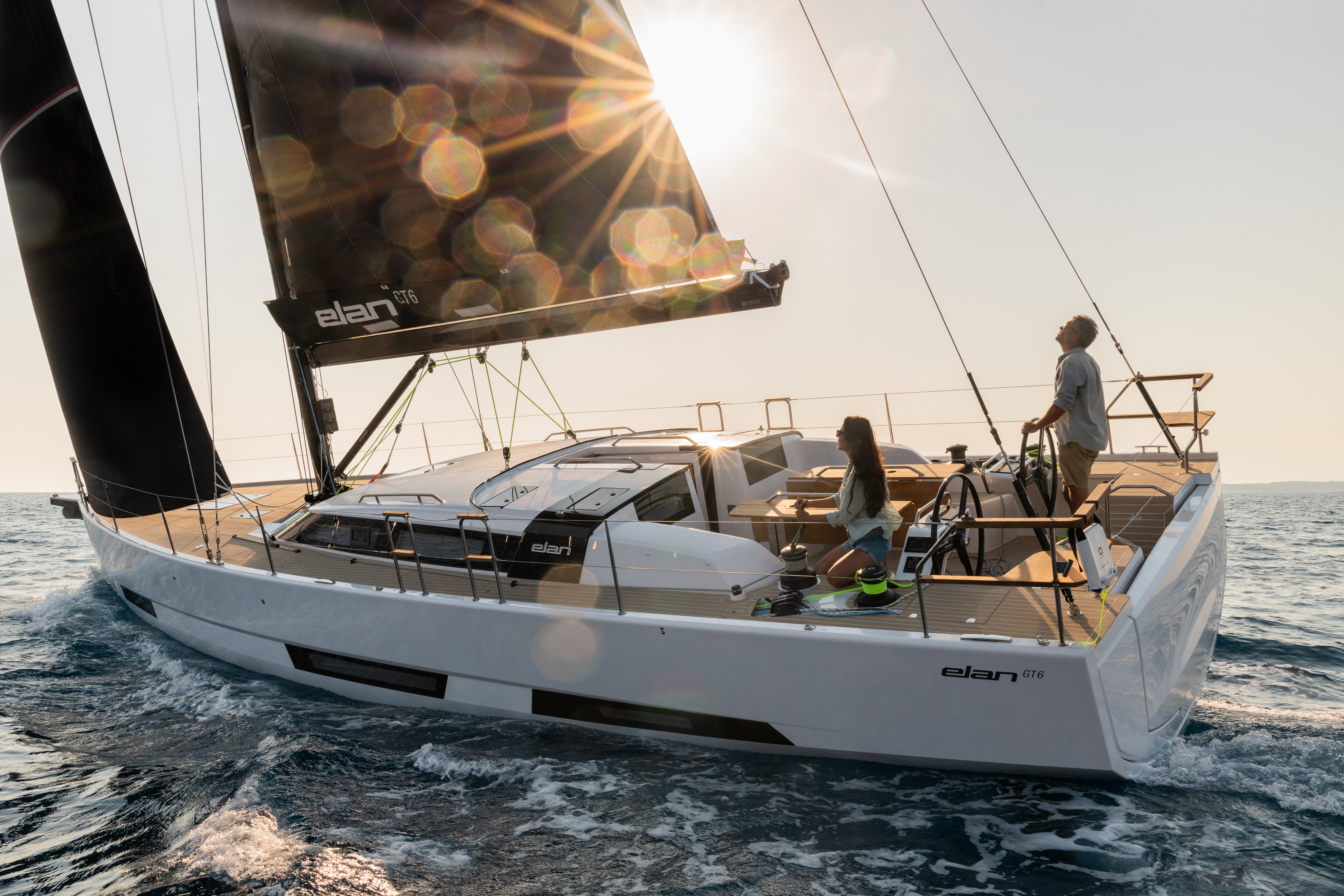 To realize the concept, Elan's development team teamed up with a nautical architecture house Humphreys Yacht Design and design studios FA Porsche. The hydrodynamic shape of the sailboat's hull, the plan of the sails and the nautical stability were designed by the Humphreys Yacht Design agency, in which they also used their experience in the design of regatta sailboats when designing the more sporty sailing profile of the GT6. Otherwise, the Elan GT6 is the first production sailboat that was designed in terms of style and design in the legendary Studio FA Porsche. This is precisely why it is a vessel whose elegant silhouette attracts the eye like a magnet. She is the first production sailboat in her size segment to offer a "flush deck" - a flat deck from the mast forward, which gives her an assertive stance and an elegant profile. The matching curves of the hull reflect the light in surprising patterns, while smaller design elements express both the confidence of the auto-moto industry and the elegance and changeability of nature.