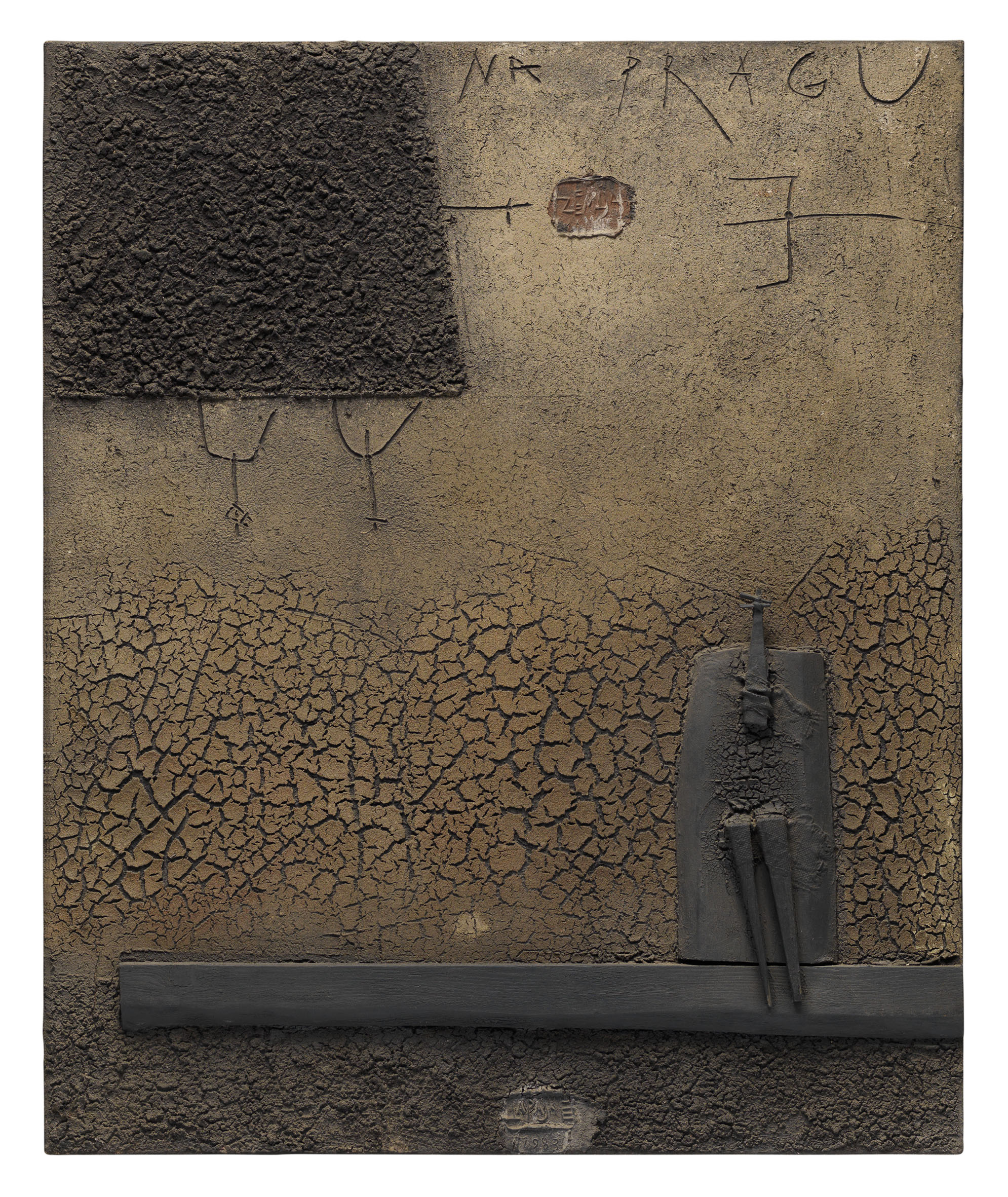 Lapajnet's range extends from the early, engraver-marked works in miniatures to monumental public sculptures in Maribor and elsewhere, where his oeuvre turned in completely new directions. They have a special place in his oeuvre high-profile scenes and props for theatrical performances. The most famous chapter is probably still Lapajnet's painting opus, which is through the wooden reliefs and the layers applied to them black bog lands started in 1978. By bringing earth to the gallery - he strengthened it with binders, because he wanted his paintings to be indestructible, permanent, so that the memory could be preserved for longer - he wanted the disappearing landscape and the nature that is increasingly changing due to pollution, to give a permanent image. Not only as a guardian of the memory of the planet Earth, but also as an ambassador of nature, he took care of maintaining the awareness of man as nothing more than a fragment of nature.