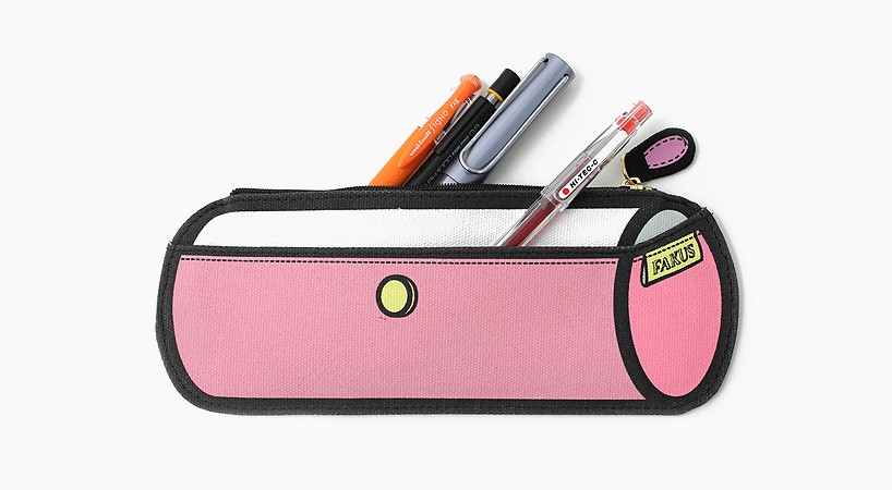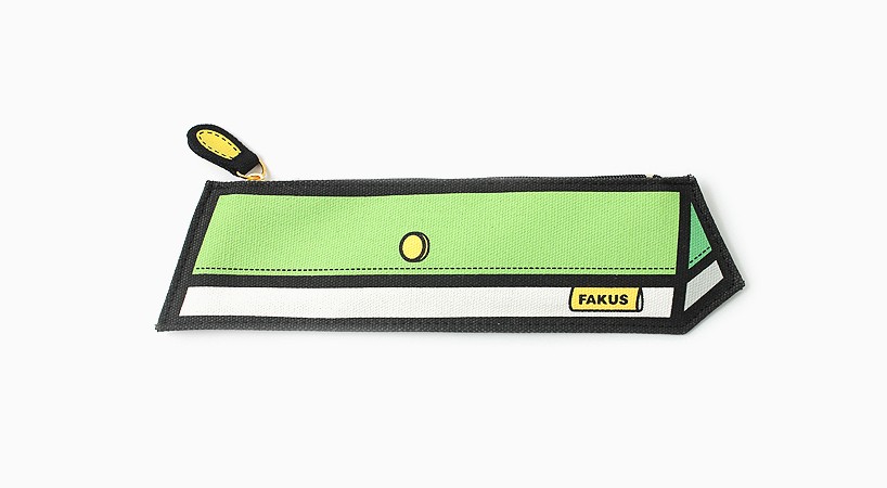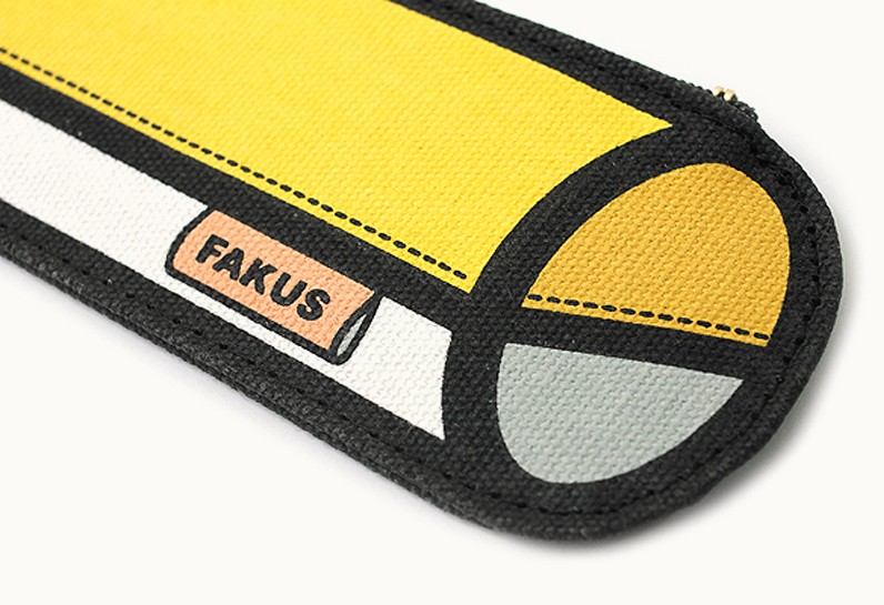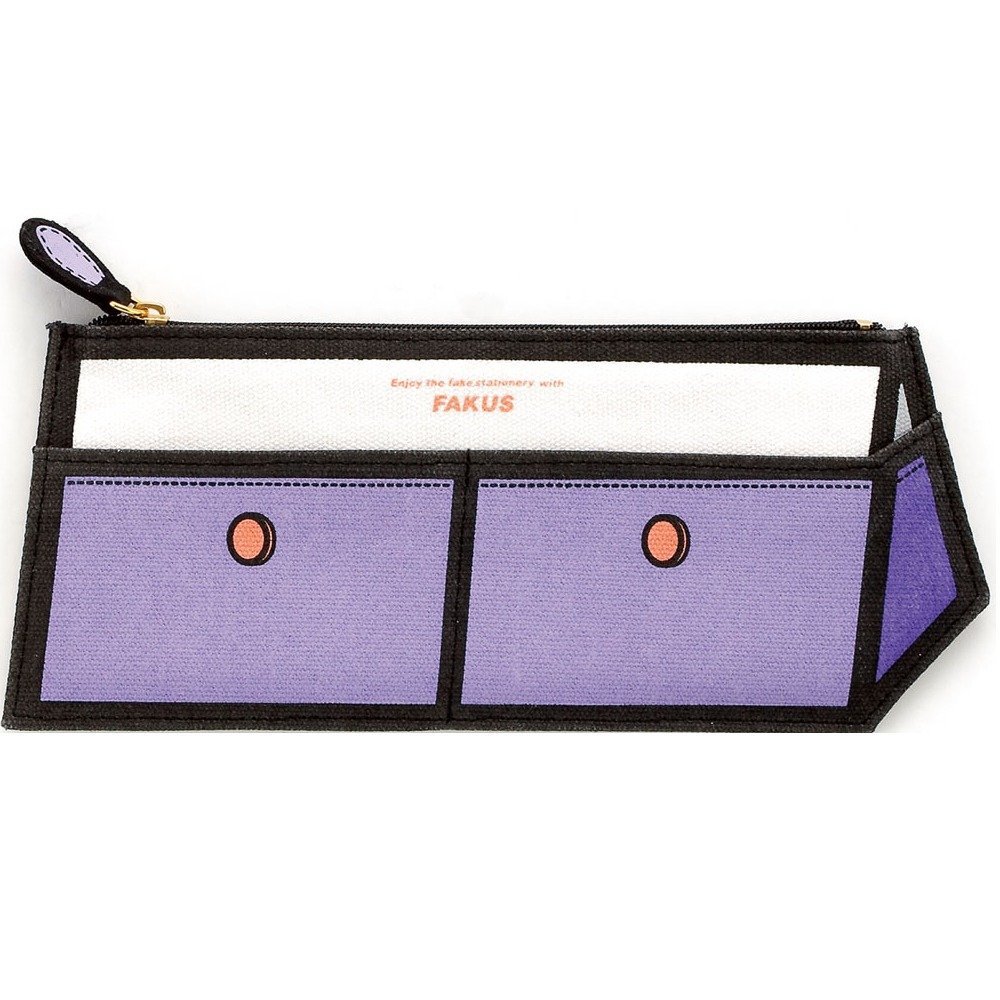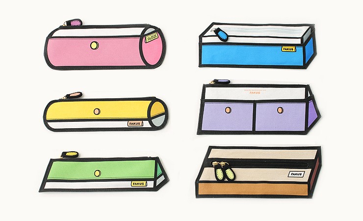 Fakus pens drawn 3D illusion and deceitfulness reach with black border around light canvas made of cotton and artificial fibers, which are further enhanced with imitation accessories, such as seams, zippers and patches. Set playful Fakus pens it includes pink, blue, yellow, purple, green and brown versions, oval, square and conical shapes.