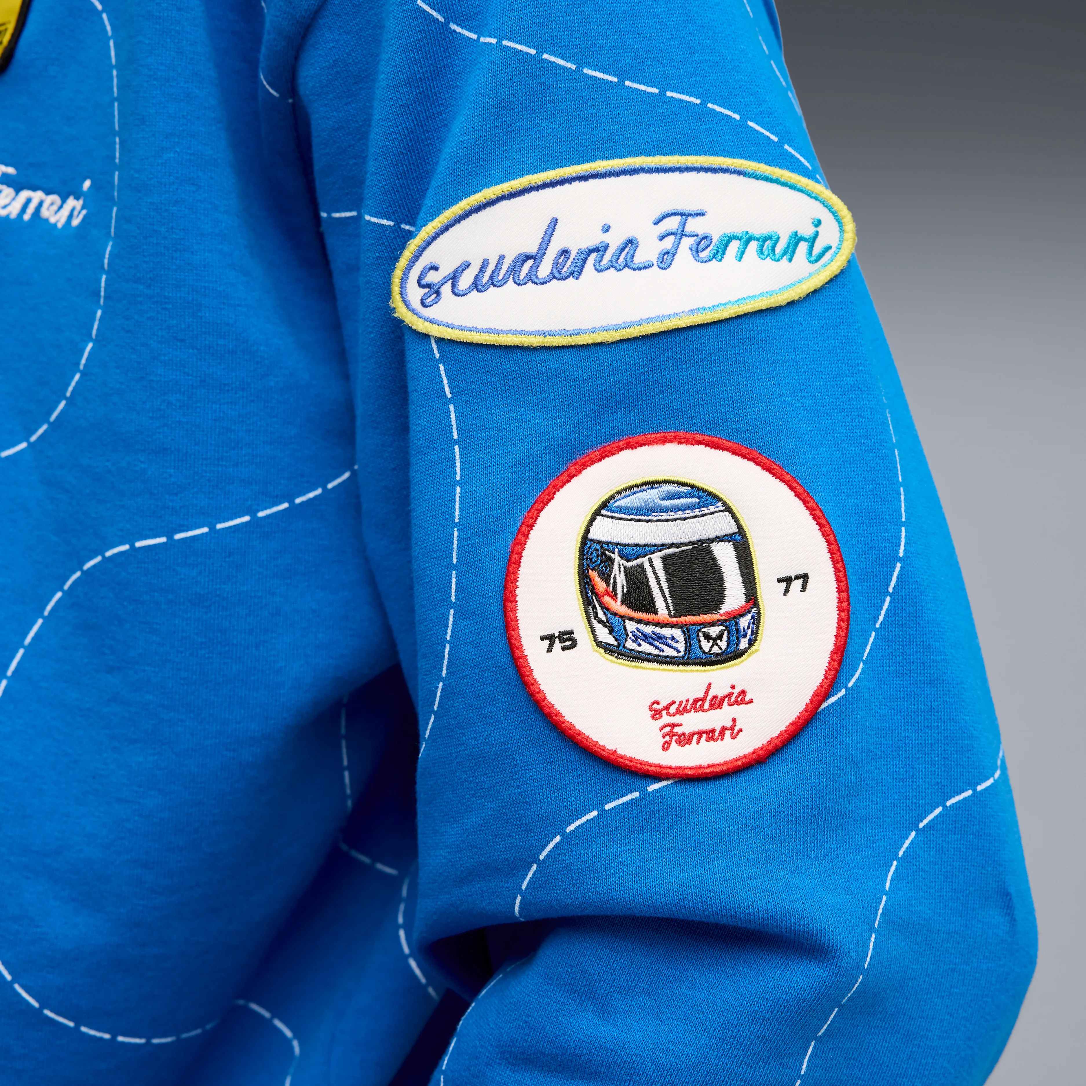 Jackets with vintage patches, iconic Ferrari logos, classic cuts yet contemporary and daring – this collection speaks a style language that is not tied to the season. It is for those who know that true speed comes from within – whether it is a race car or confidence.