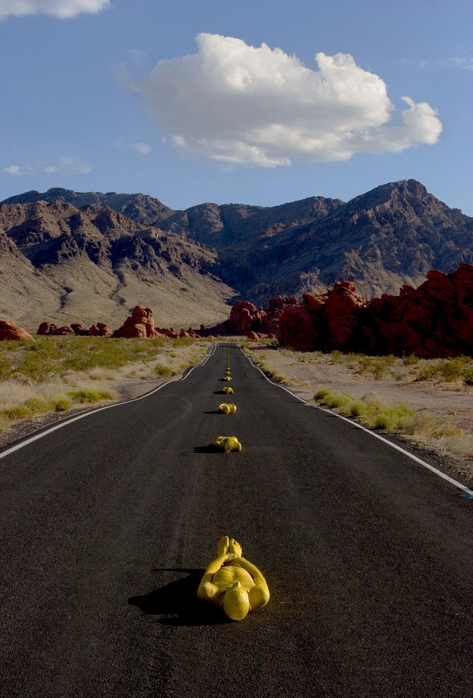 For body painting and the preparation of the scene was spent by the 47-year-old Swiss from one to eight hours, and the photos were taken in different parts of the world. After Italy (Sicily), United States of America (San Juan Island National Historical Park, Point Dume-Zuma coast) and Puerto Rico (Cala Rossa) now hopes that the journey will take him to Alaska or Antarctica.
