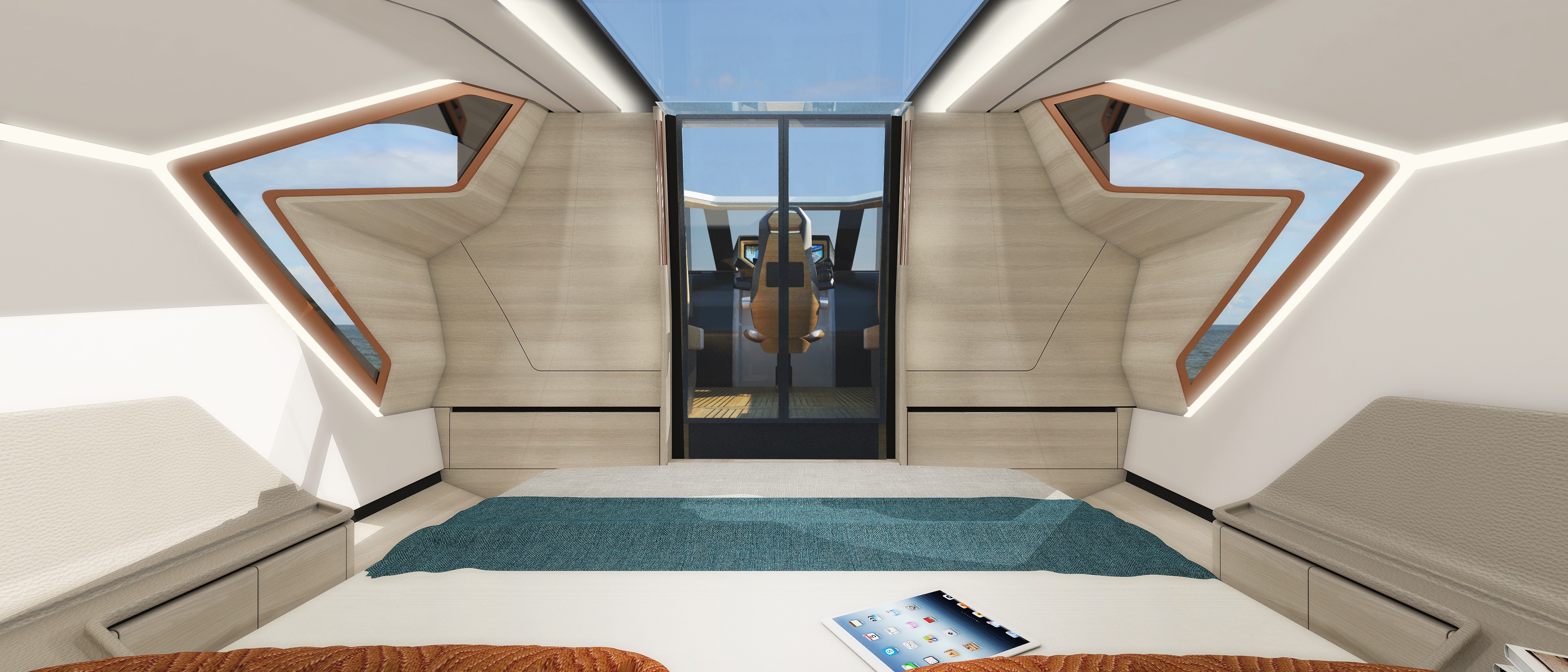 In addition to speed and design, the Superfly GTO 42 also has a social touch. They imagined it as center of social events, where you can meet friends, acquaintances or simply enjoy with your family. 13.09 meter yacht it is flexible and has an outdoor kitchen and bar right in the middle of its open area. The salon offers plenty of space and has a fully equipped interior galley, in which the counter and table are made of carbon fiber. Besides kitchen and central space is still available bedroom with a large bed and plenty of storage space. Due to the large number of windows, the interior is bright, which in turn increases the feeling spaciousness. In the room where the captain has the main word, we find comfort sofa U-shaped, which transforms into individual seats when needed, and we are ready for a fast sea adventure.