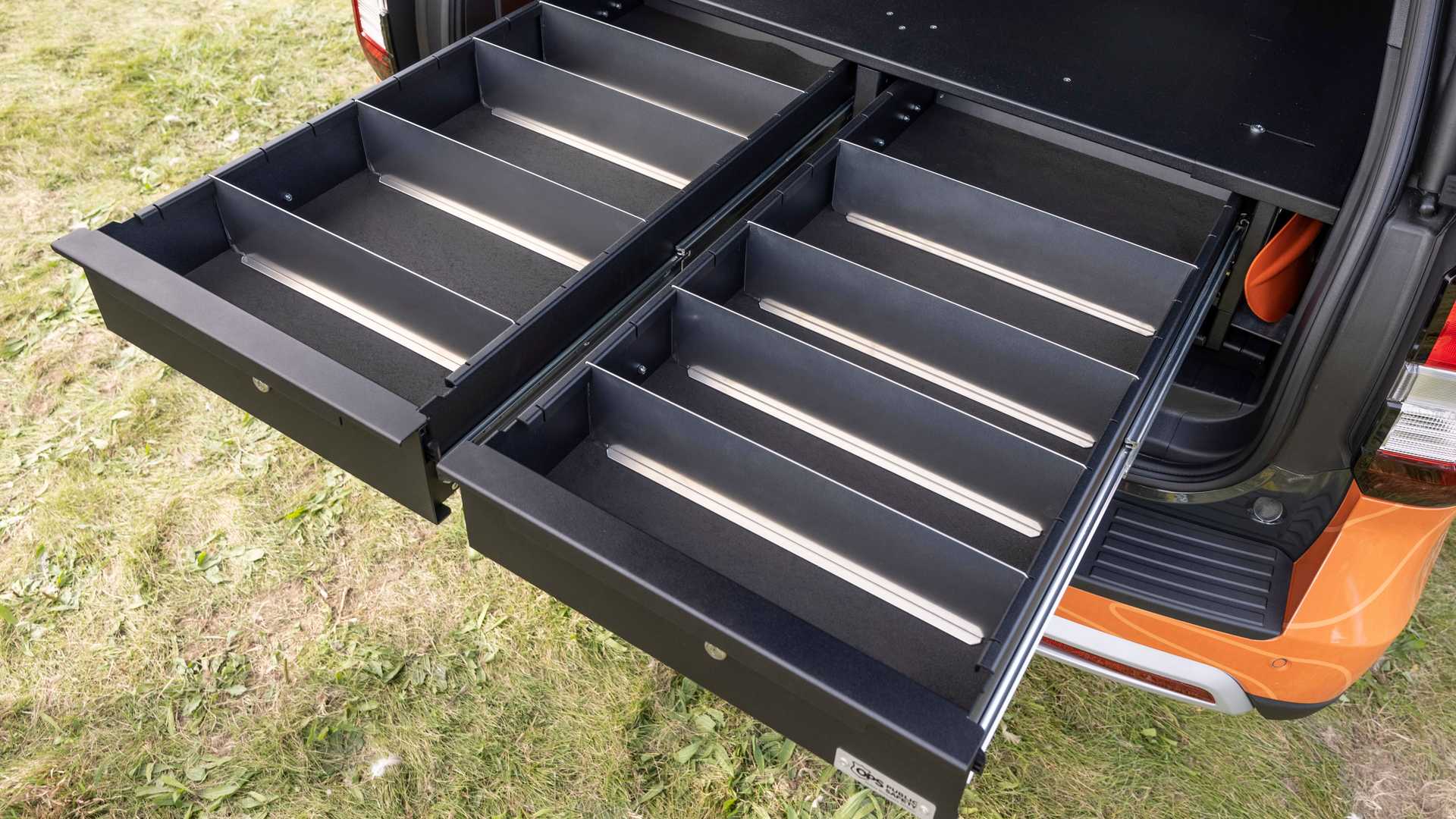 In order to justify the name ʺOff-Gridʺ, it is necessary to upgrade the chassis. In this case, durable FOX Performance Elite Series shock absorbers were installed on the Explorer 17-inch and the rims are fitted with off-road tires in size 35-inch. It was also necessary to protect the gearbox and for additional 5 cm raise the height of the car. Only this one is driving now 32 cm above the ground. The latest upgrade is not specific to the Explorer model, as it is a mini trailer Turtleback Expedition Series. With it, we provide even more storage space and a supply of cold and hot water. It has a kitchen with a stove and a sink. Although in this case it is only an Explorer concept, this time it is not completely far from reality, as is usually the case with concepts.