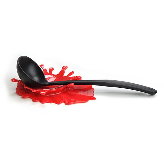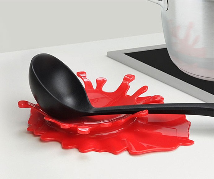 Kitchens too often we take it too seriously, sterile, laboratory. The kitchen is a living space, which you can let's spice it up with lively accessories. Do you think your kitchen needs a little de-clutter too? Hot Mess Splash Illuison it is the illusion of disorder, poured tomato juice or indeed anything we can think of. It's a mess that's portable and dishwasher safe. And what's more – these kinds of fun accessories are really handy. Specifically Hot Mess Splash Illusion it makes a great work surface, whether for cutting or for setting down a hot ladle. But the most fun part comes next time when friends visit us...
