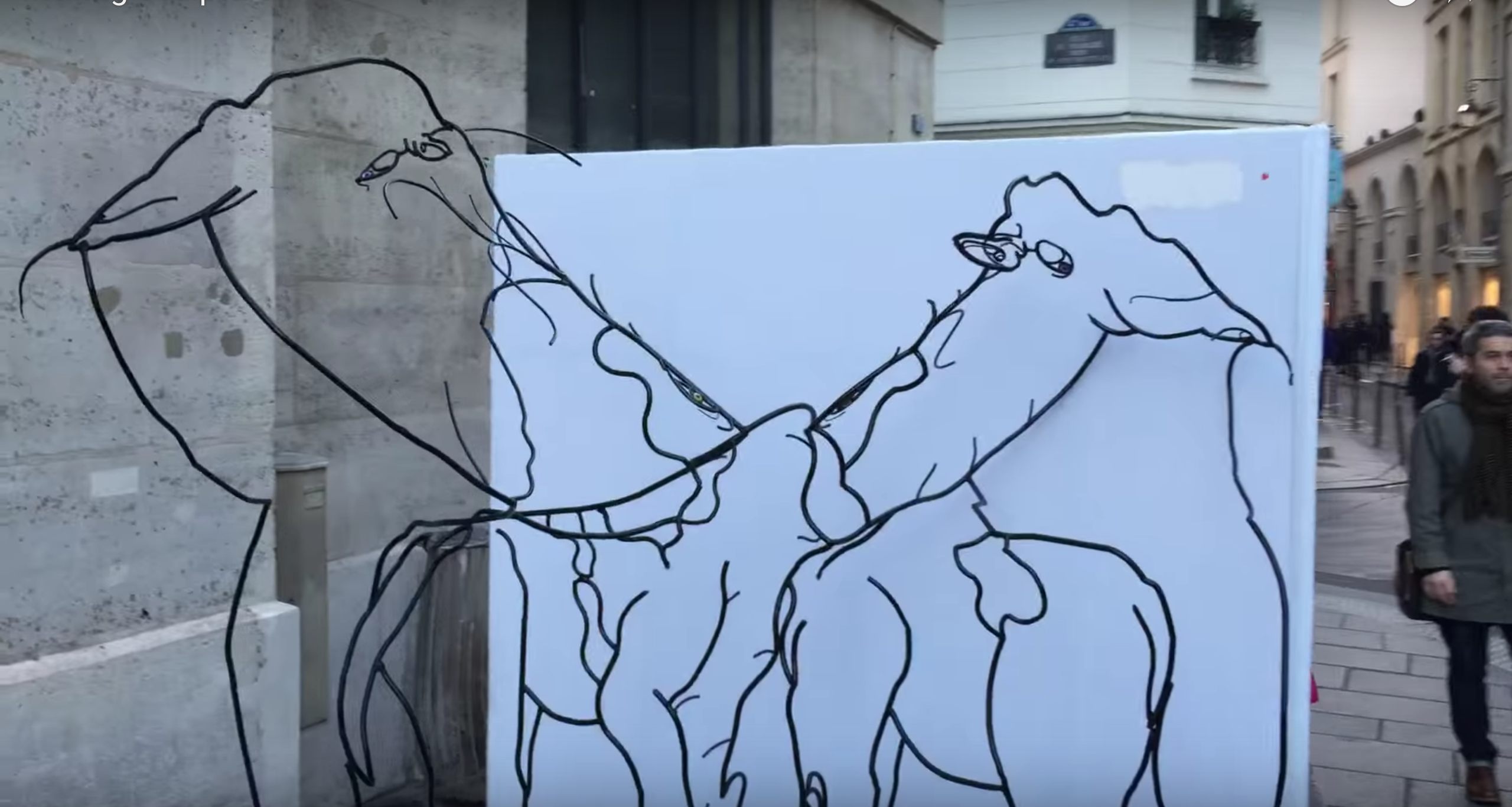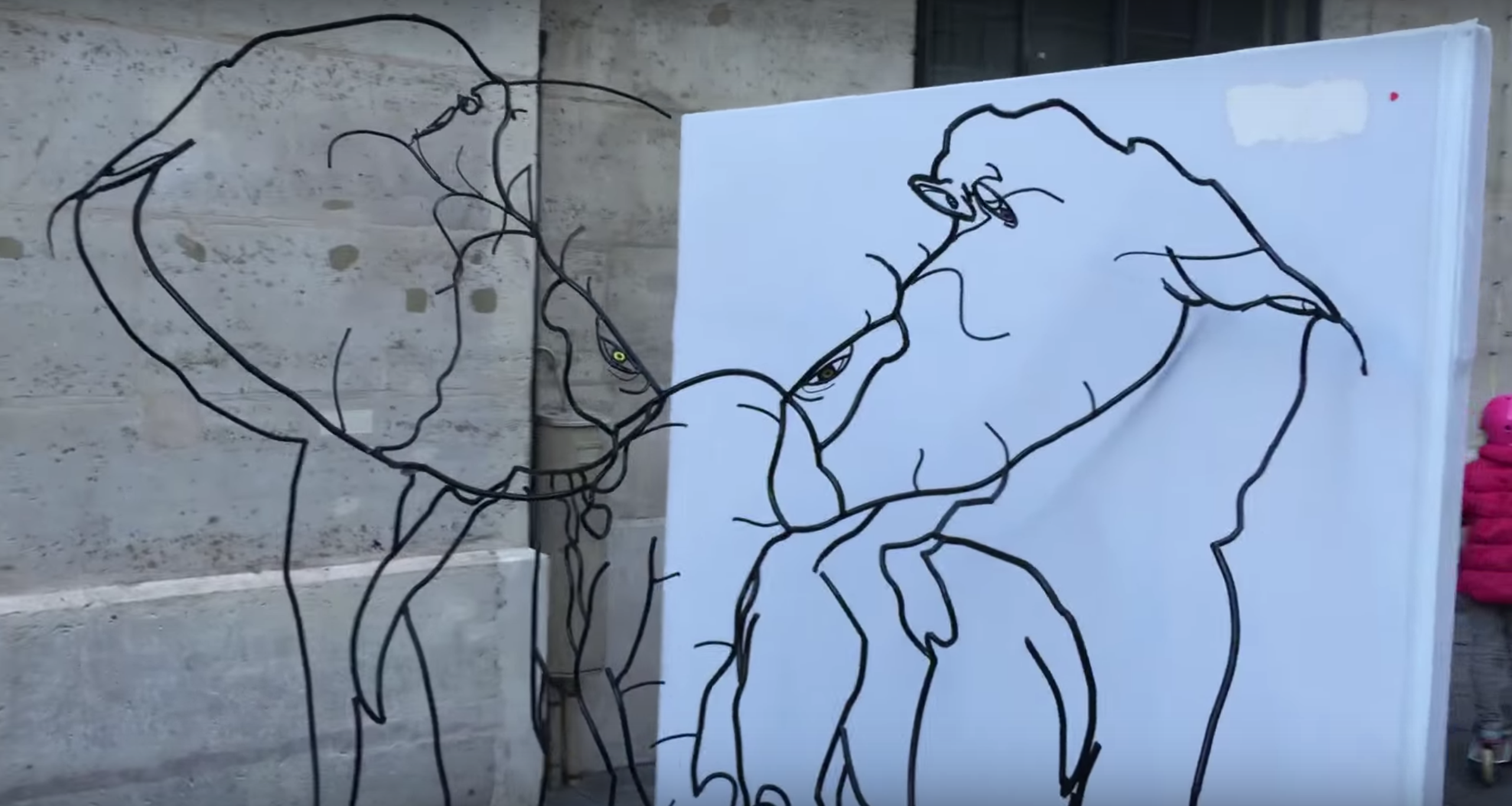 Matthieu Robert-Ortis has created an interesting 3D wire sculpture that is a giraffe from one point of view and an elephant from the other and changes like an optically variable character on an ID. The artist named his work La révolution des Girafes or The Evolution of the Giraffe and it will absolutely captivate you.