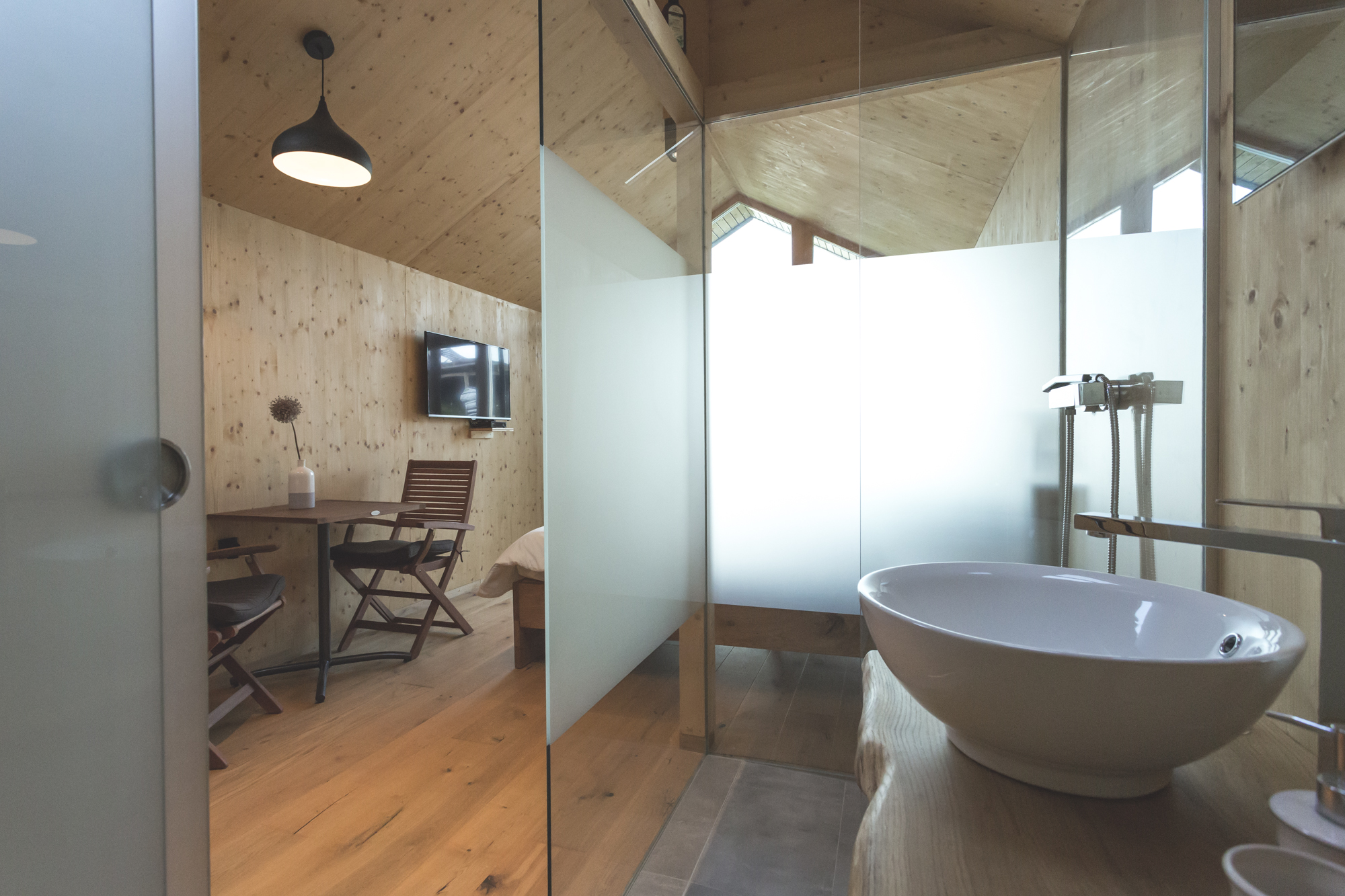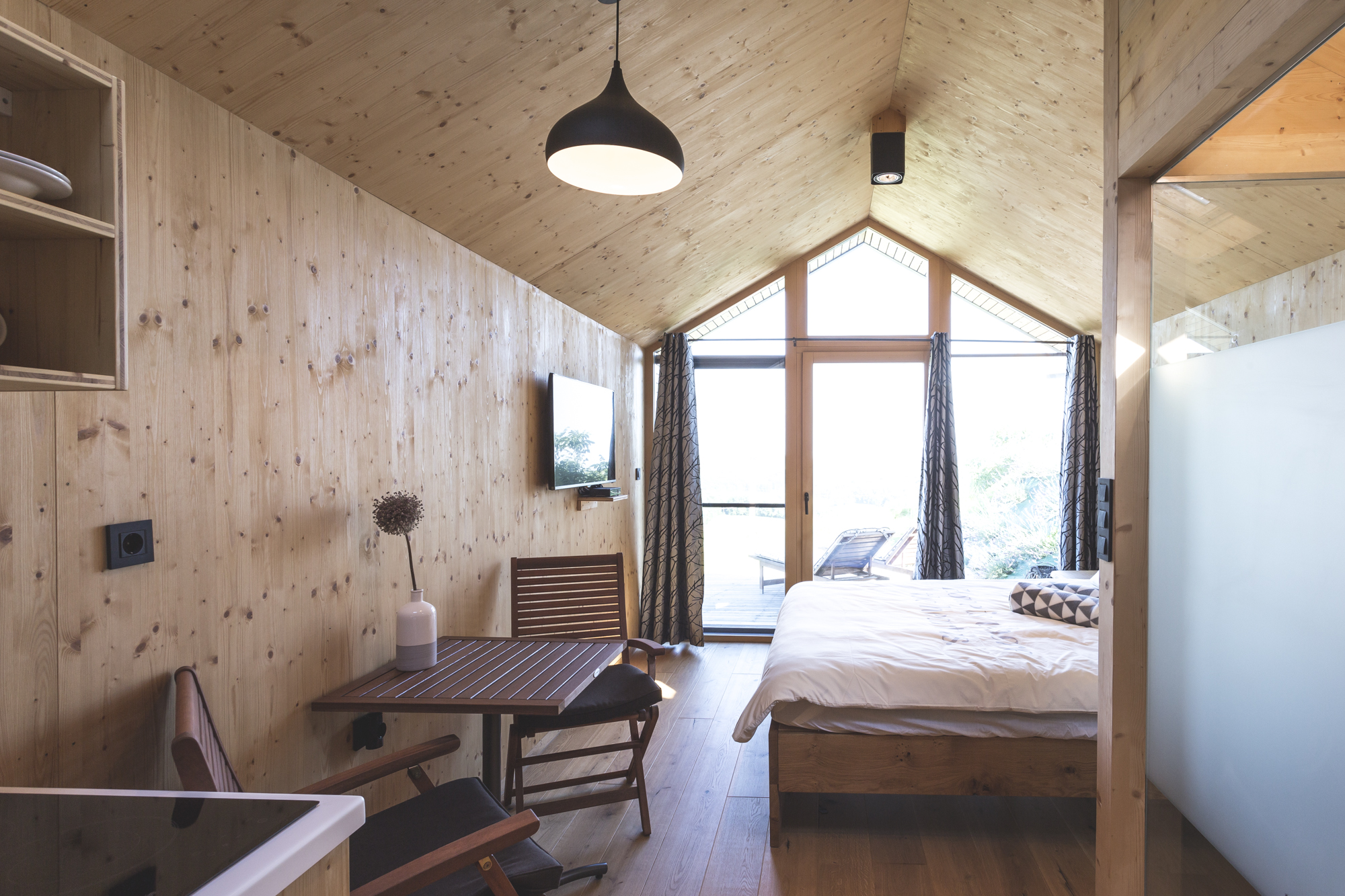 The Julija glamping house is located as an independent mobile facility in the immediate vicinity of the apartment house. They are used in the house top modern natural materials. Anyone looking for rest and relaxation will find a pleasant bedroom in the house panoramic window and an equipped kitchenette with basic dishes for food preparation. On private terrace you will be able to enjoy a unique view of the Jerusalem vineyards, and the gurgling of the nearby pond will create a special charm.