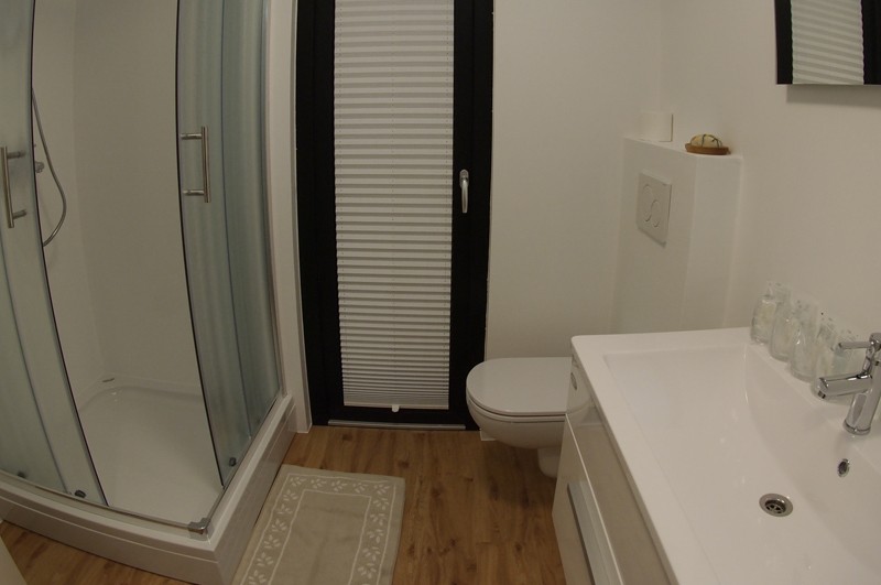 Every little house is designed for four people and also has two additional beds. The common living spaces measure as much as 40 m² and have an associated terrace measuring 18.50 m². There is a living room with a kitchen and dining room, a bathroom, a bedroom and a children's room. In front of each house is a beautiful wooden terrace. They are designed modern with top quality materials and are very functional.