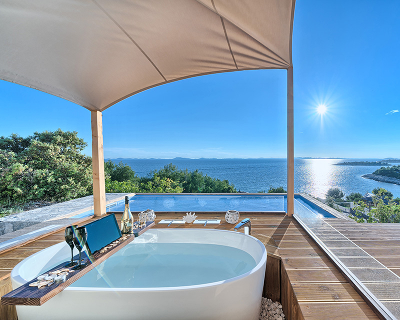 You can enjoy the surrounding nature and century-old olive trees on your own private garden and wake up to a stunning sunrise over the Adriatic Sea. With the comforts offered at the resort, you can expect a stress-free holiday as everything is taken care of. Pamper yourself in the sun, v private pool, play billiards or tennis or indulge yourself in exploring the island of Murter or many nearby national parks. If you're feeling adventurous, try to visit as many of the local beaches on the island as you can!