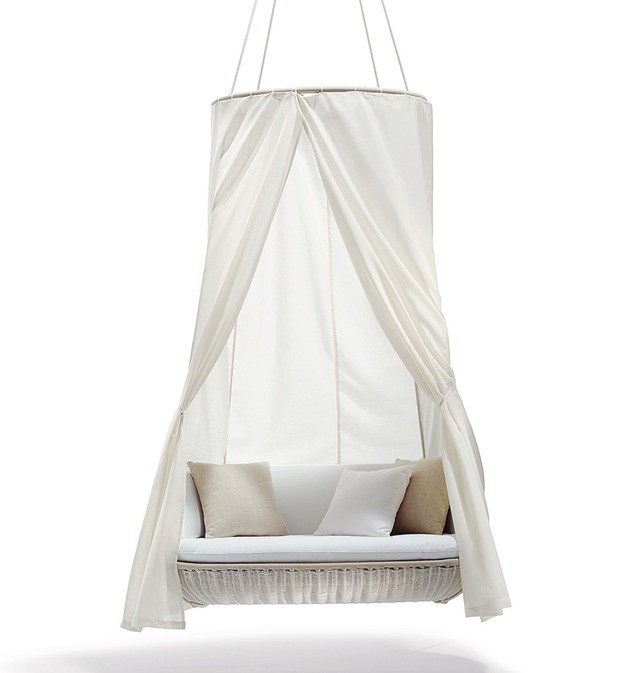 SwingMe and SwingUs are a series of hanging garden furniture, one-seaters and two-seaters, with soft cushions for even greater comfort and pampering. The classic design in light, sandy shades works in many gardens and terraces. Another one in line Dedon's super comfortable, luxurious lines that you wouldn't be able to resist.