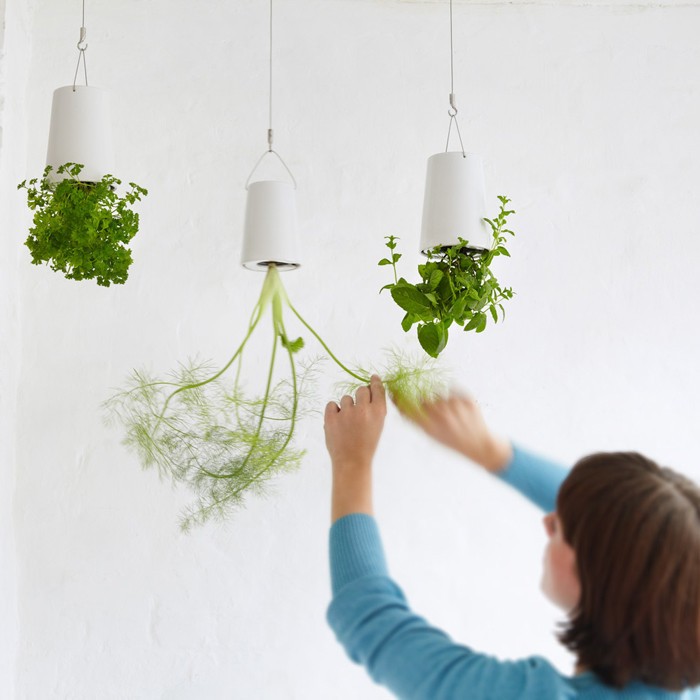 Sky Planter unique pots for flowers, herbs and spices successfully defy gravity, enliven the space and do not take up any extra space, as they are installed right under the ceiling.